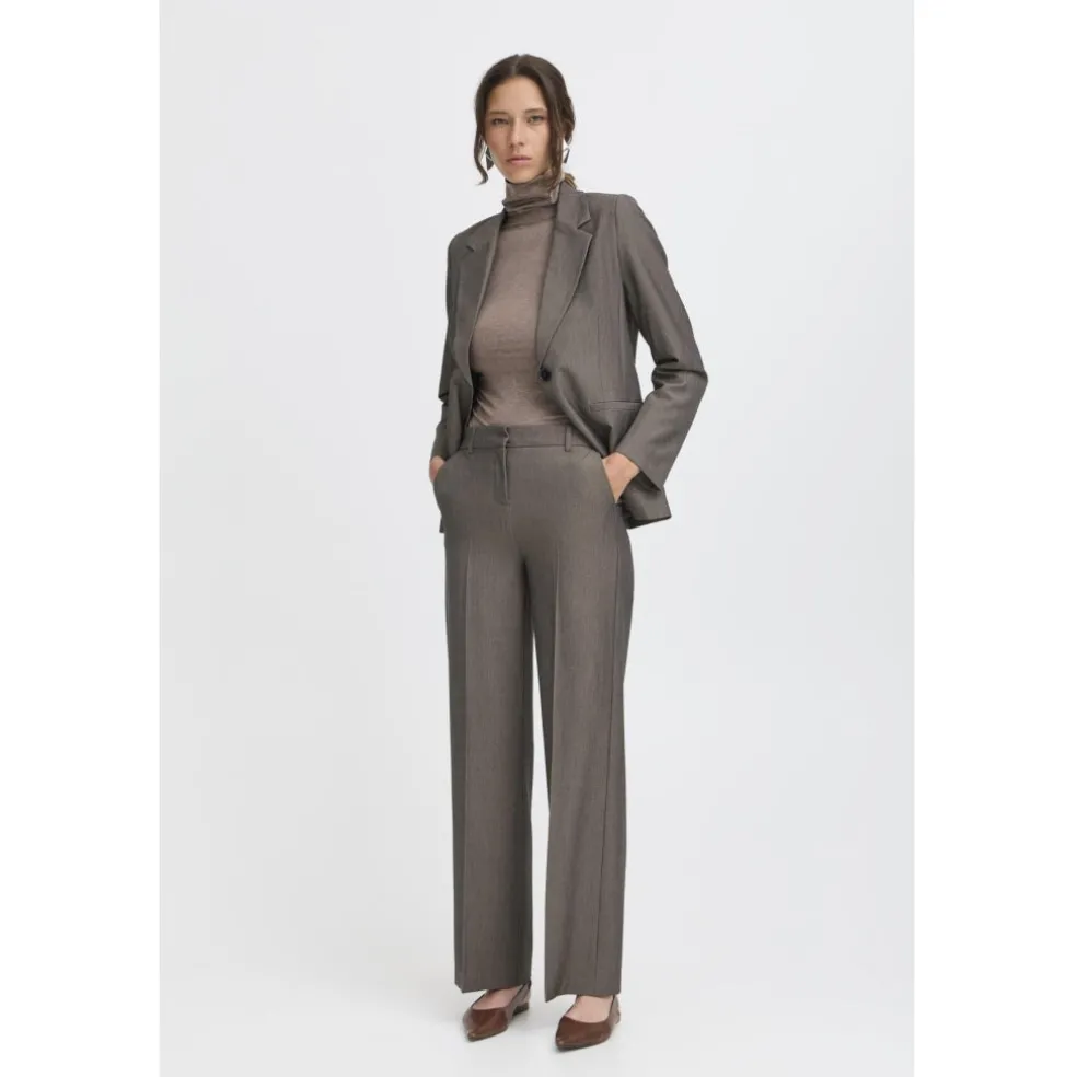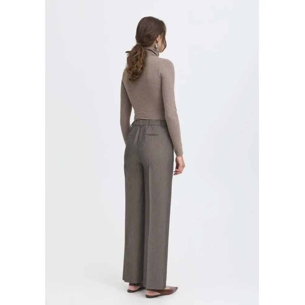 Bukser fra b.young som er normale i taljen, og har en “regular” pasform, de er vide i benene.