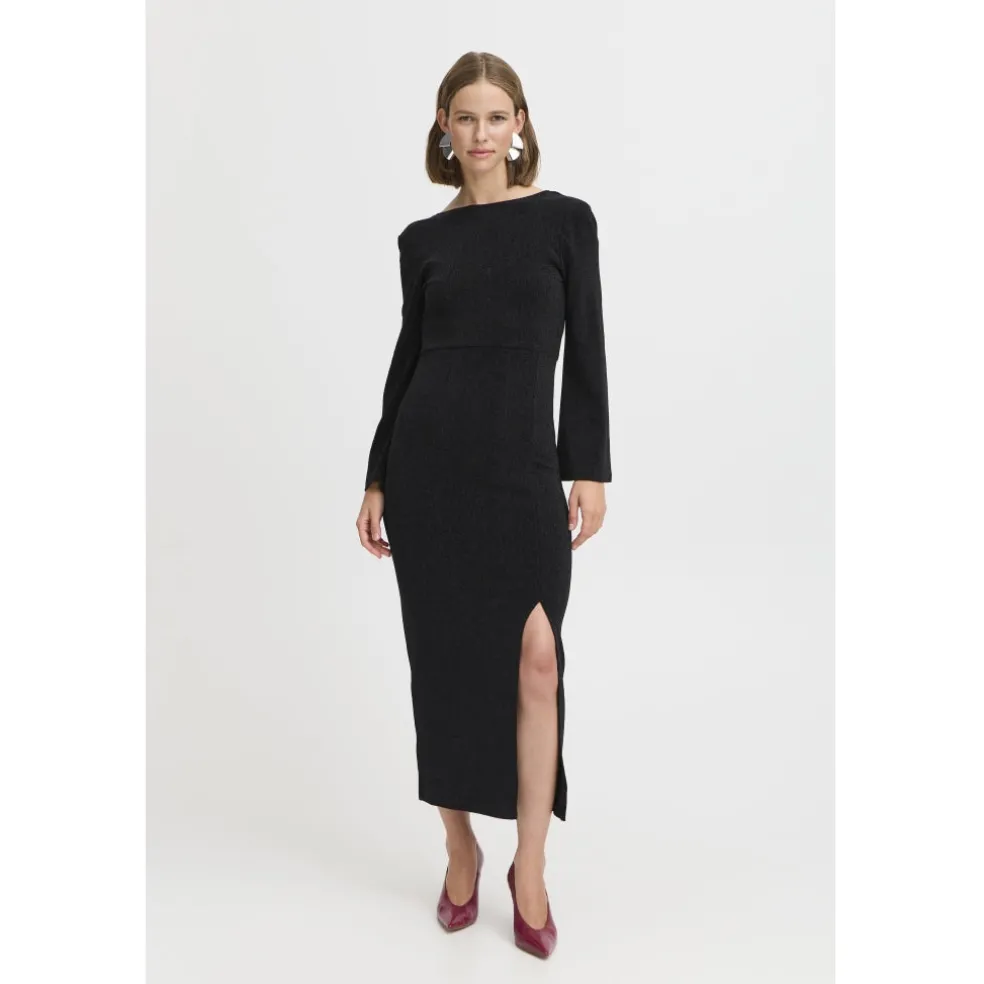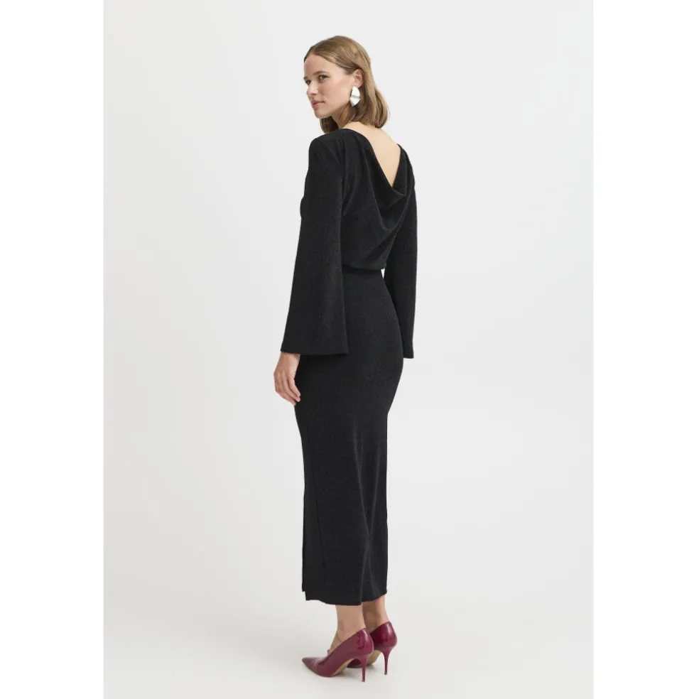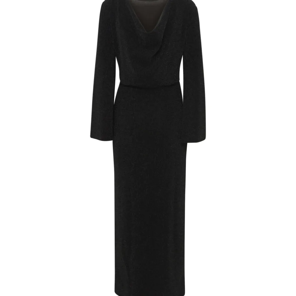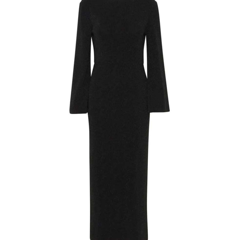 Smuk glimmerkjole med dyb rygudskæring fra b.young. Kjolen er åben i ryggen og har et slids i den ene side. Super fin med et par stiletter og en elegant taske.
