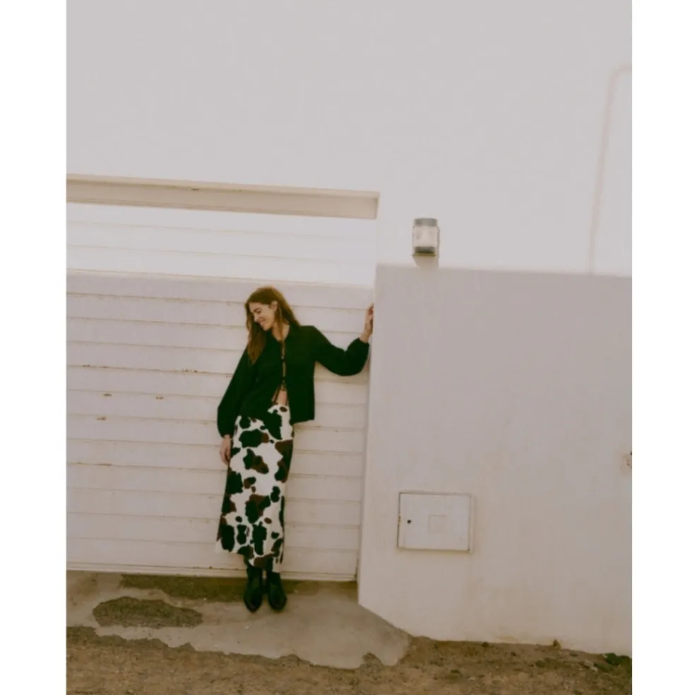 Lang nederdel fra b.young med ko-print. Perfekt til hverdage, med en basis top. Style til arrangementer med en skjorte og stiletter.