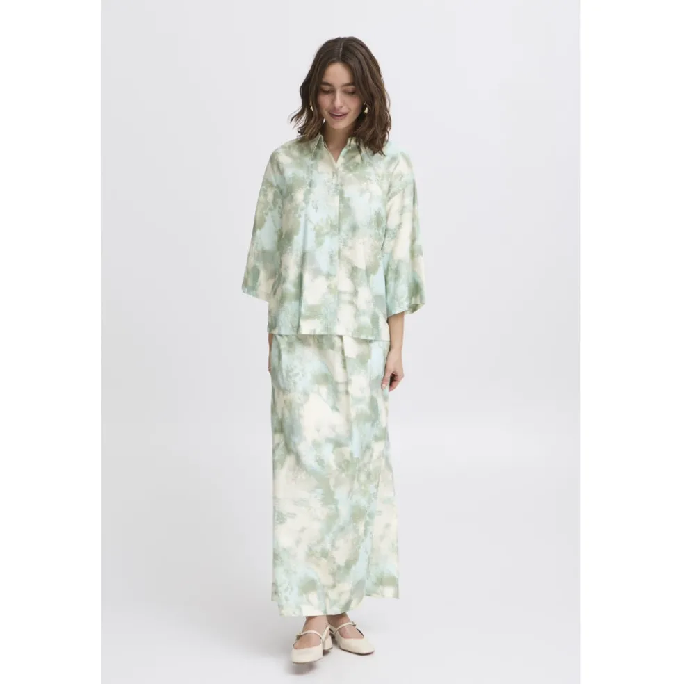 Cool skjorte fra b.young i det sejeste multifarvede print. Skjorten har 3/4 ærmer og er super sej med matchende bukser fra samme serie og et par slingback stiletter til.