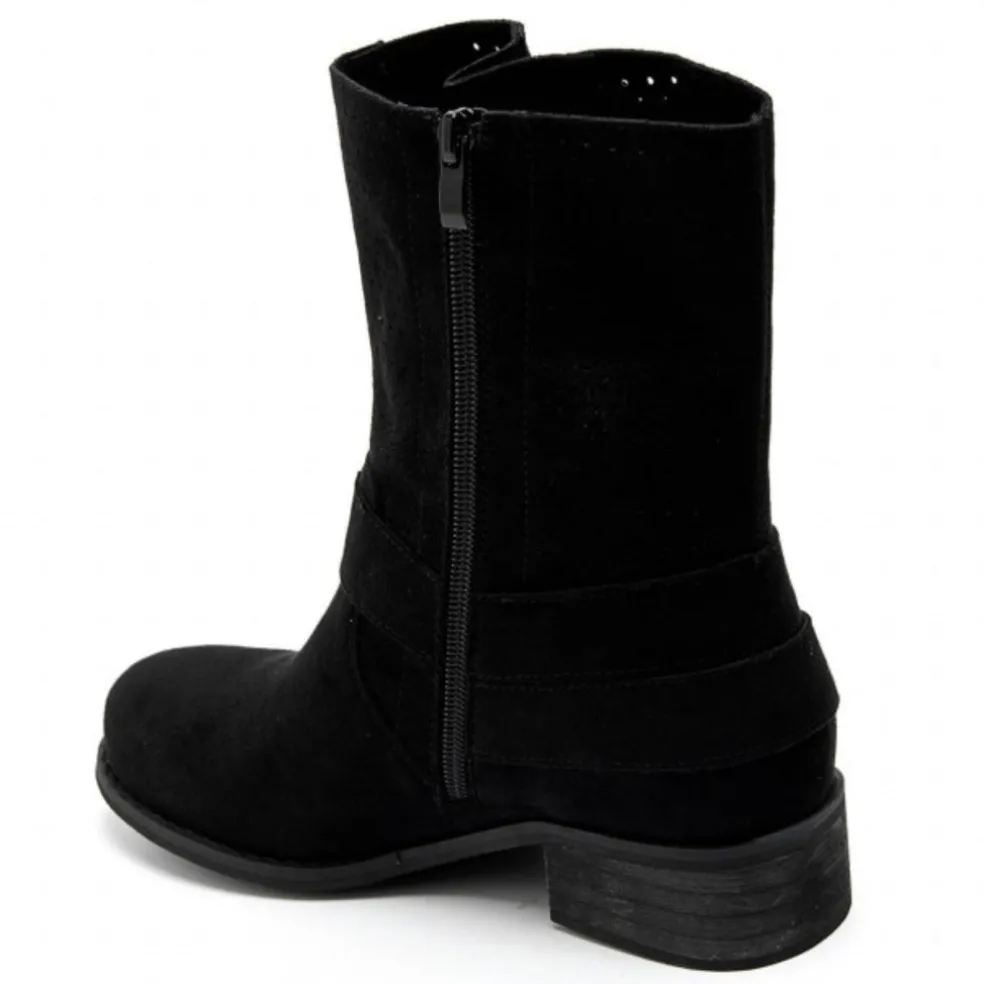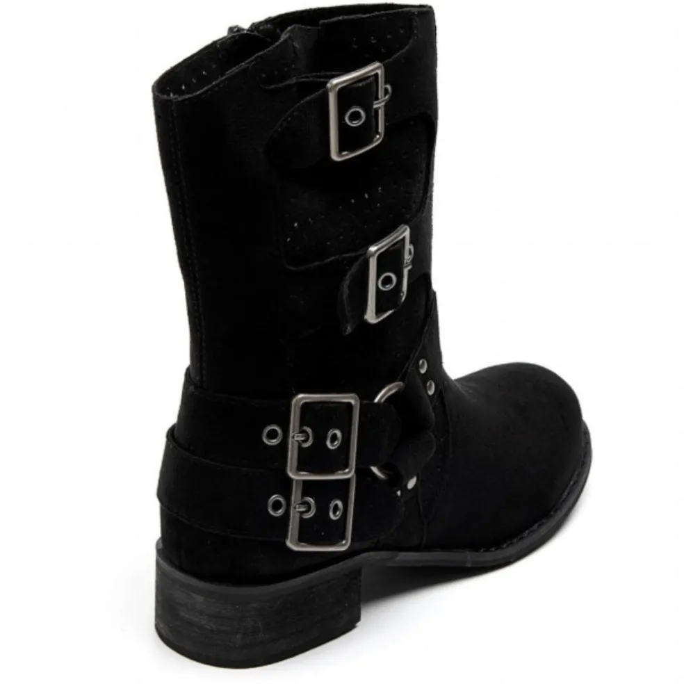 Cool bikerstøvler i blødt materiale med flotte spænder og lynlåse på siden.