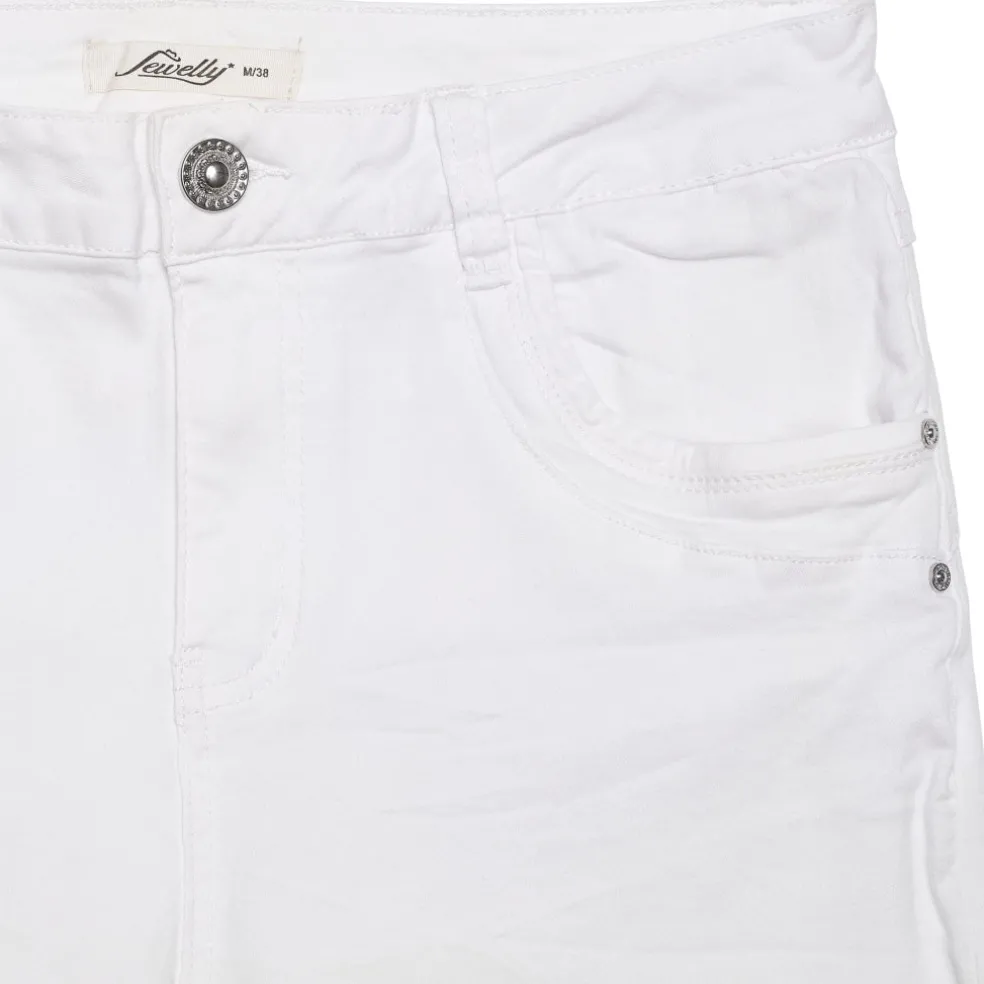 Cool jeans fra Jewelly med massere af stræk i. Med lommer foran og bagpå, og med en fin knap med sten i.