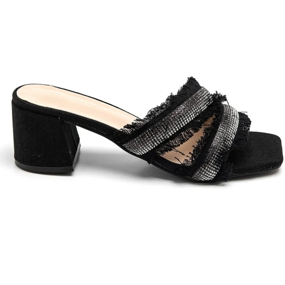 Smukke denim stiletter med sten og frynser. Perfekte at style til både hverdag og fest.