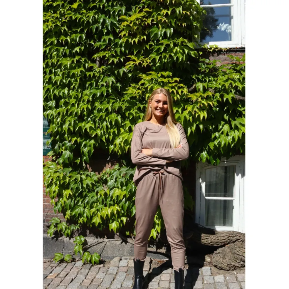 Super komfortable bukser fra Liberté, perfekte til hverdagbrug. Bukserne har bindebånd i taljen og er i en stretchy kvalitet. Brug den sammen med matchende bluse fra samme serie.