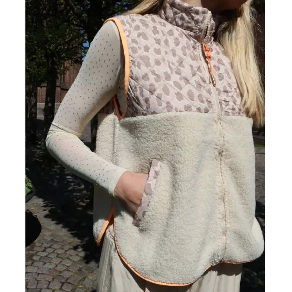 Cool, trendy teddy vest fra Liberté i leoprint. Vesten har seje lyserøde kontrastsyninger, hvilket giver en super fed effekt. Den har lommer og lynlås, og kan bruges med en basis t-shirt eller langærmet under for et komplet lag-på-lag look.