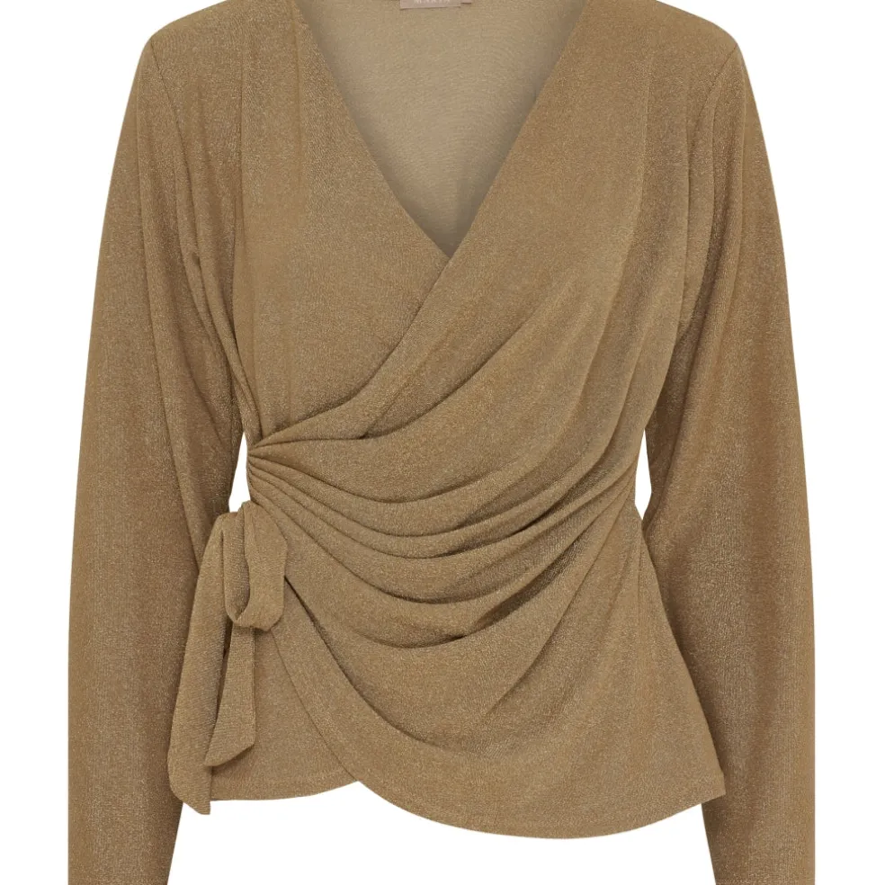 Elegant glimmer bluse fra Marta du Château med slå-om-effekt. Blusen har V-hals og lange ærmer. De kan styles med et par bukser og slingback eller en nederdel og støvler.