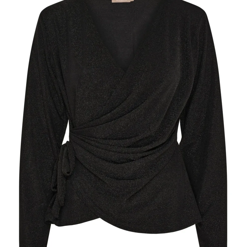 Elegant glimmer bluse fra Marta du Château med slå-om-effekt. Blusen har V-hals og lange ærmer. De kan styles med et par bukser og slingback eller en nederdel og støvler.