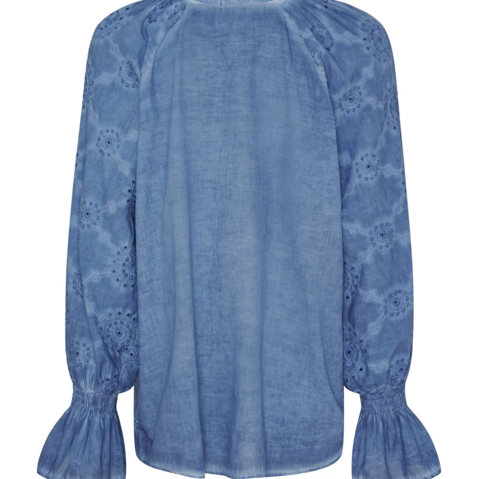 Smuk bluse med broderi anglaise og elastik rundt håndledet.