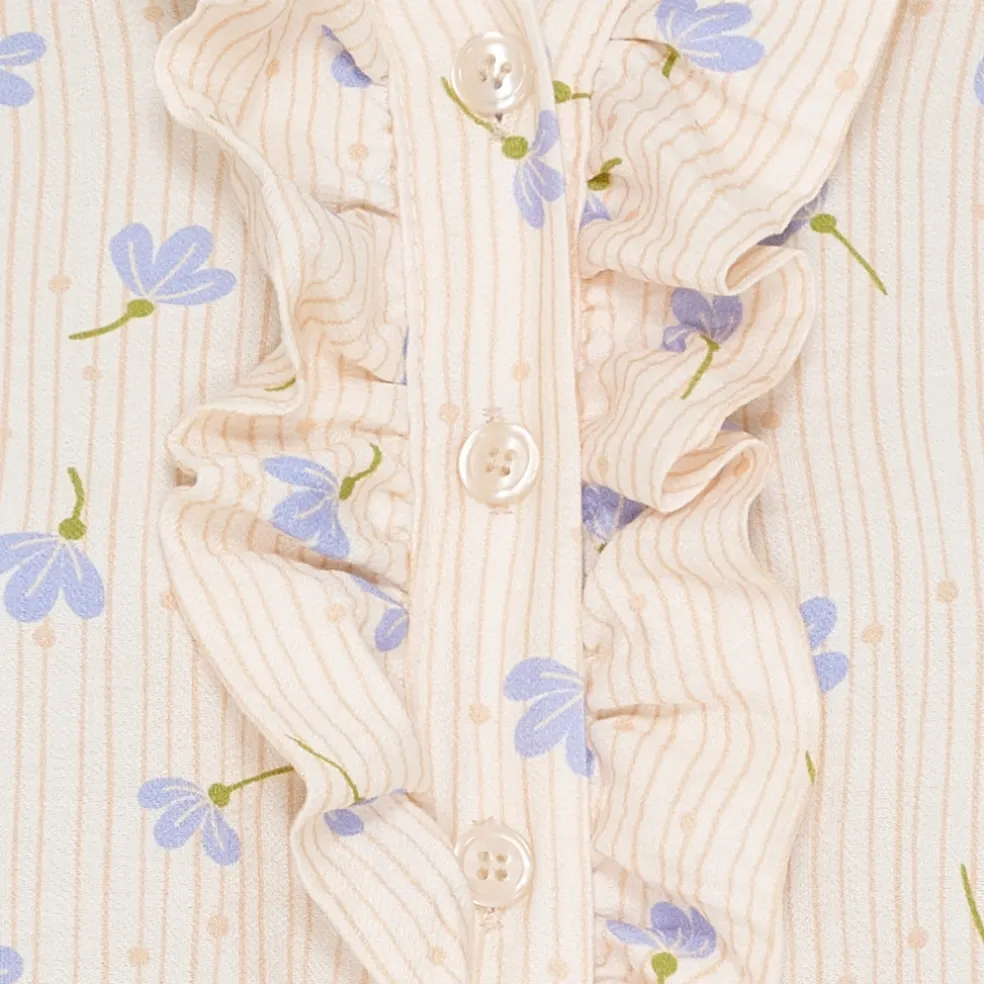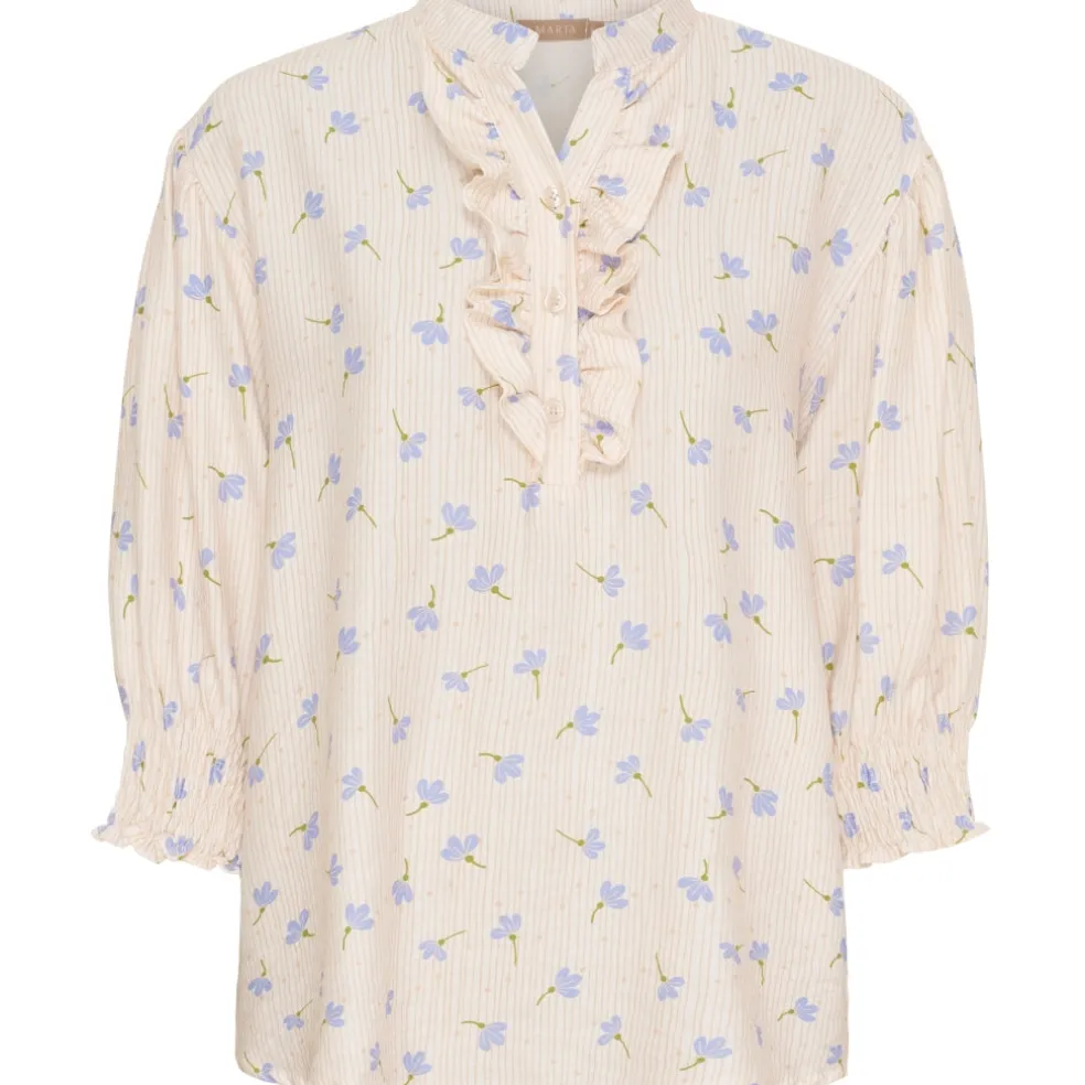 Femin og elegant bluse fra Marta Du Château. Blusen har v-hals, smock ved ærmerne og en enkel flæsedetalje langs halsen. Style den med matchende bukser fra samme serie for et fint sammenhængende look.