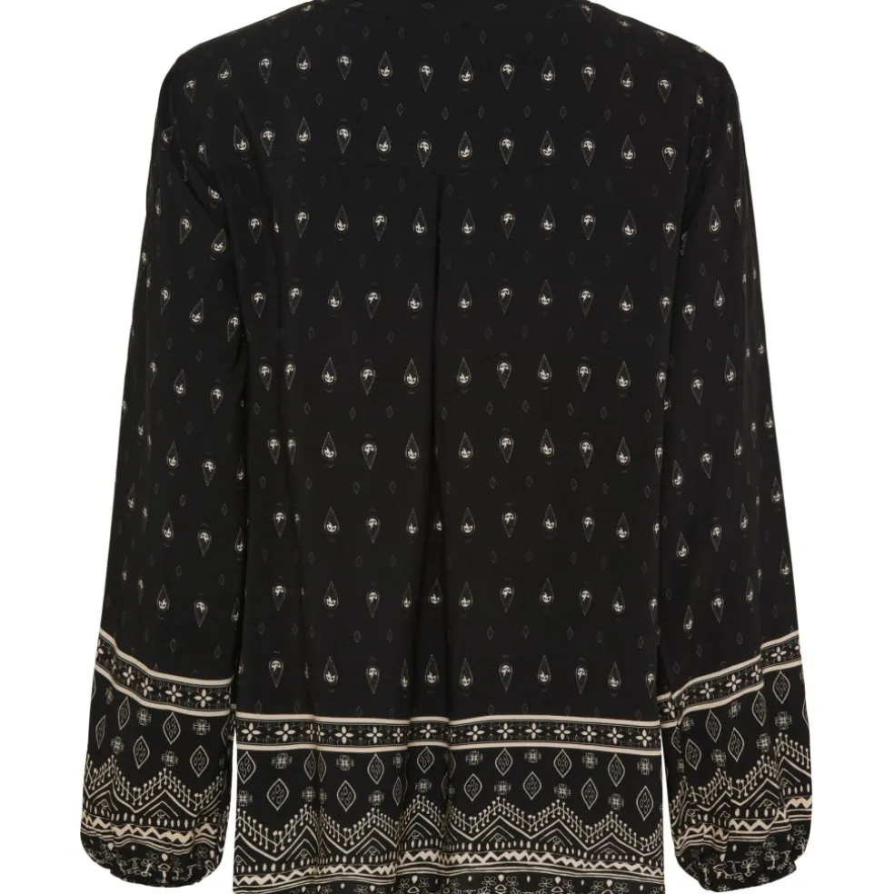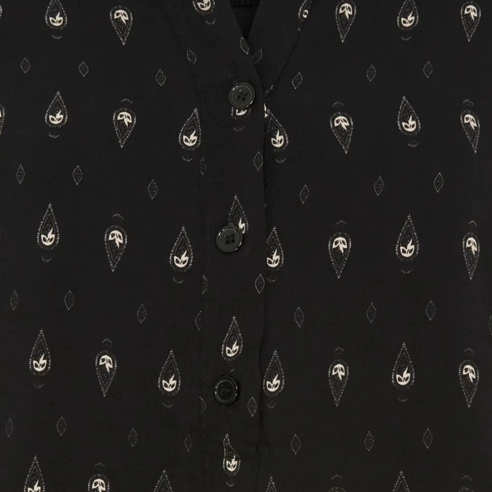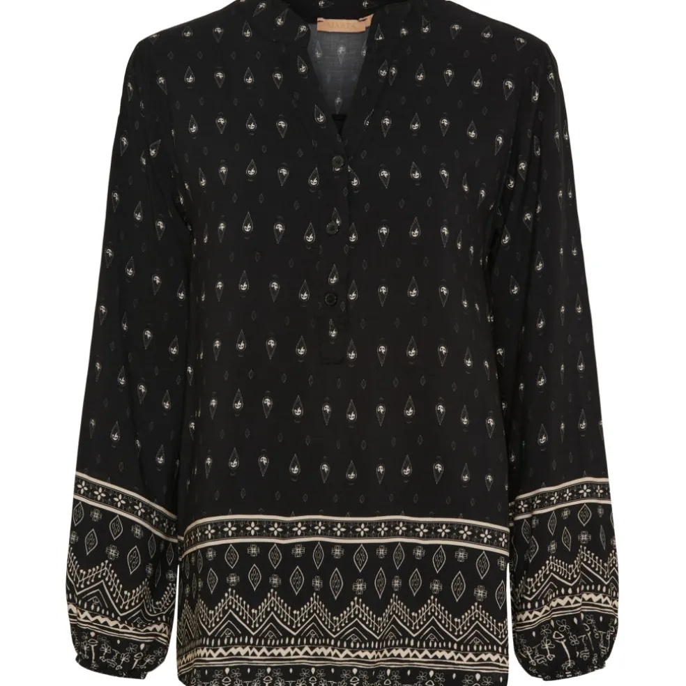 Smuk bluse med feminint mønster fra Marta. Blusen er v-halset og har sofistikerede knapper, og kan både bruges til hverdag og finere anledninger.
