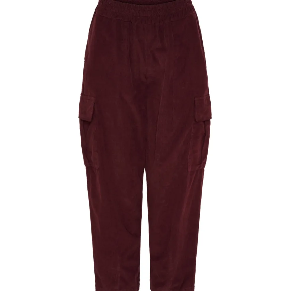 Cool baggy buks med store lommer på siden i babyfløjl. Bukserne har elastik ved taljen og gode lommer. Super alsidig buks, som kan styles med både t-shirt, skjorte eller blazer.