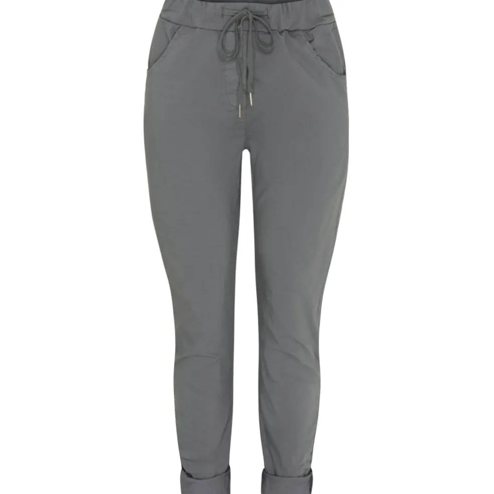 Dejlige og behaglige hverdagsbukser fra Marta du Château med elastik i taljen. Bukserne har opsmøg, snørrer og lommer, og kan både bruges til en skjorte, blazer eller bluse.