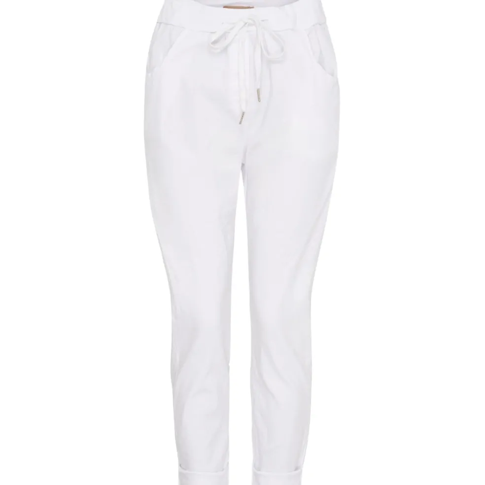 Dejlige og behaglige hverdagsbukser fra Marta du Château med elastik i taljen. Bukserne har opsmøg, snørrer og lommer, og kan både bruges til en skjorte, blazer eller bluse.