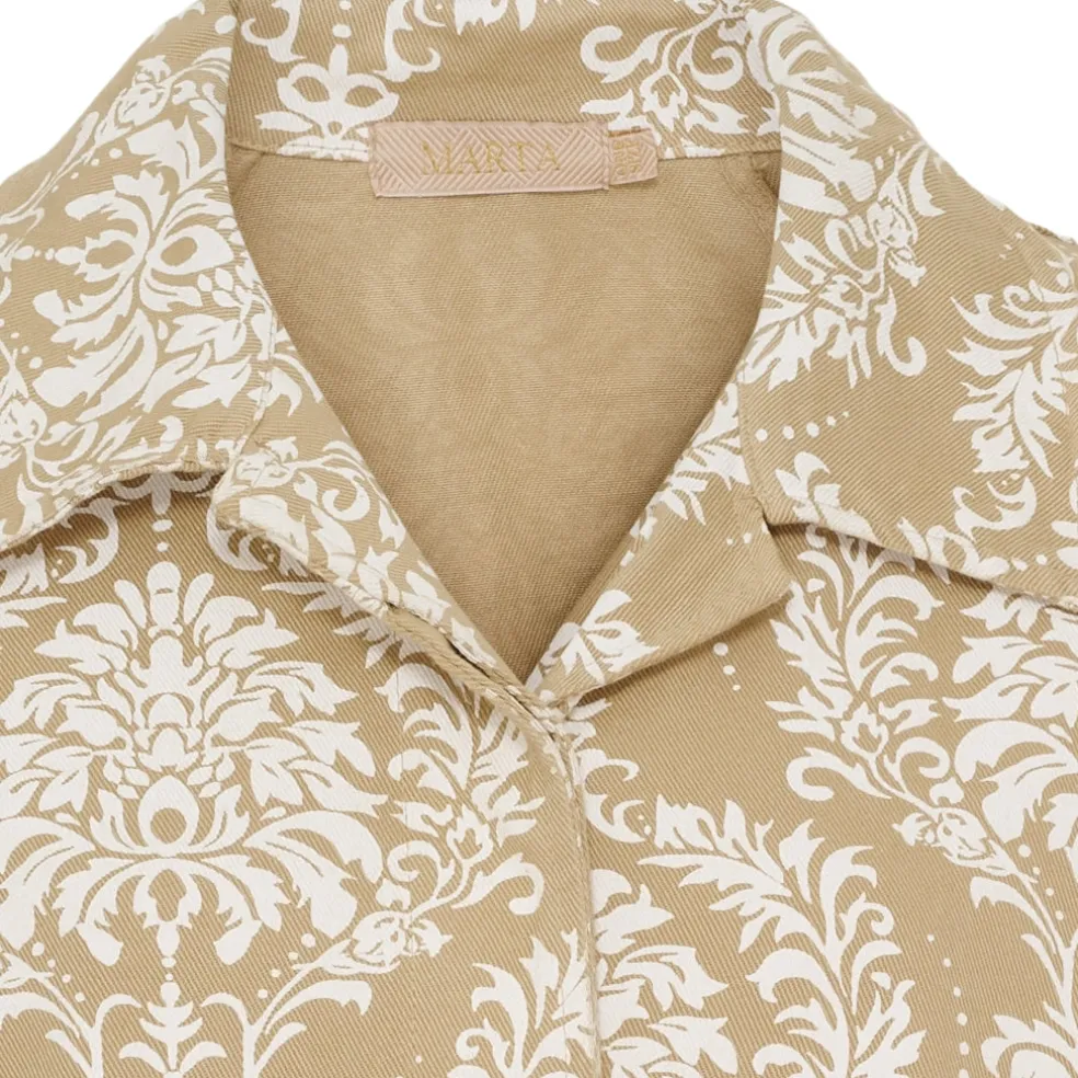 Smukkeste jakke fra Marta Du Château. Jakken har en åben krave, og dens unikke print kan pifte ethvert outfit op. Brug den både til jeans, leggings og kjoler – mulighederne er mange.