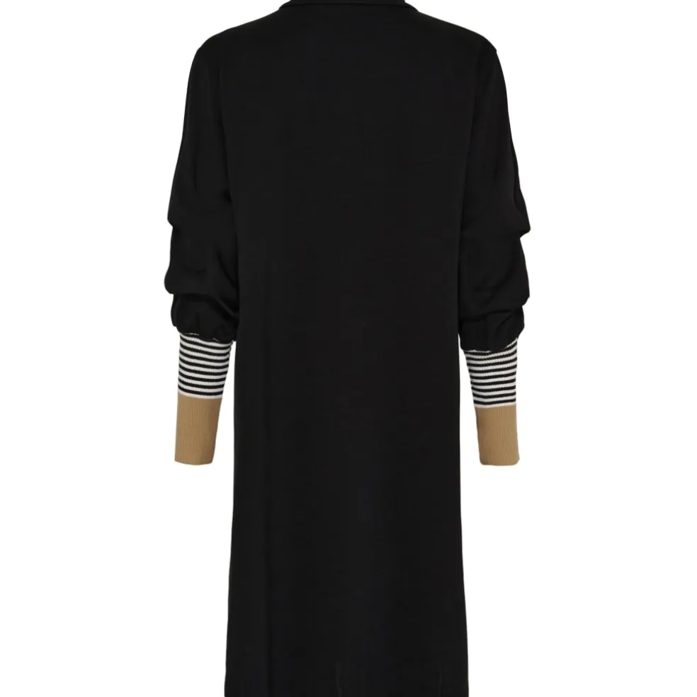 Fin kjole med enkle knapper og lange ærmer med kontrastmanchetter i striber. Kjolen har en høj, feminin krave og kan både bruges til sneakers og støvler. Brug den for sig selv eller tilføj tights eller leggings.