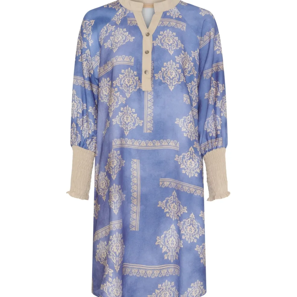 Kjole/tunika fra Marta Du Château med smock i ærmerne. Kjolen har et fint feminint print og kan både bruges til hverdag og finere brug. Til hverdag, style den med tights og sneakers. Til finere brug, style den med støvler eller slingback stiletter.