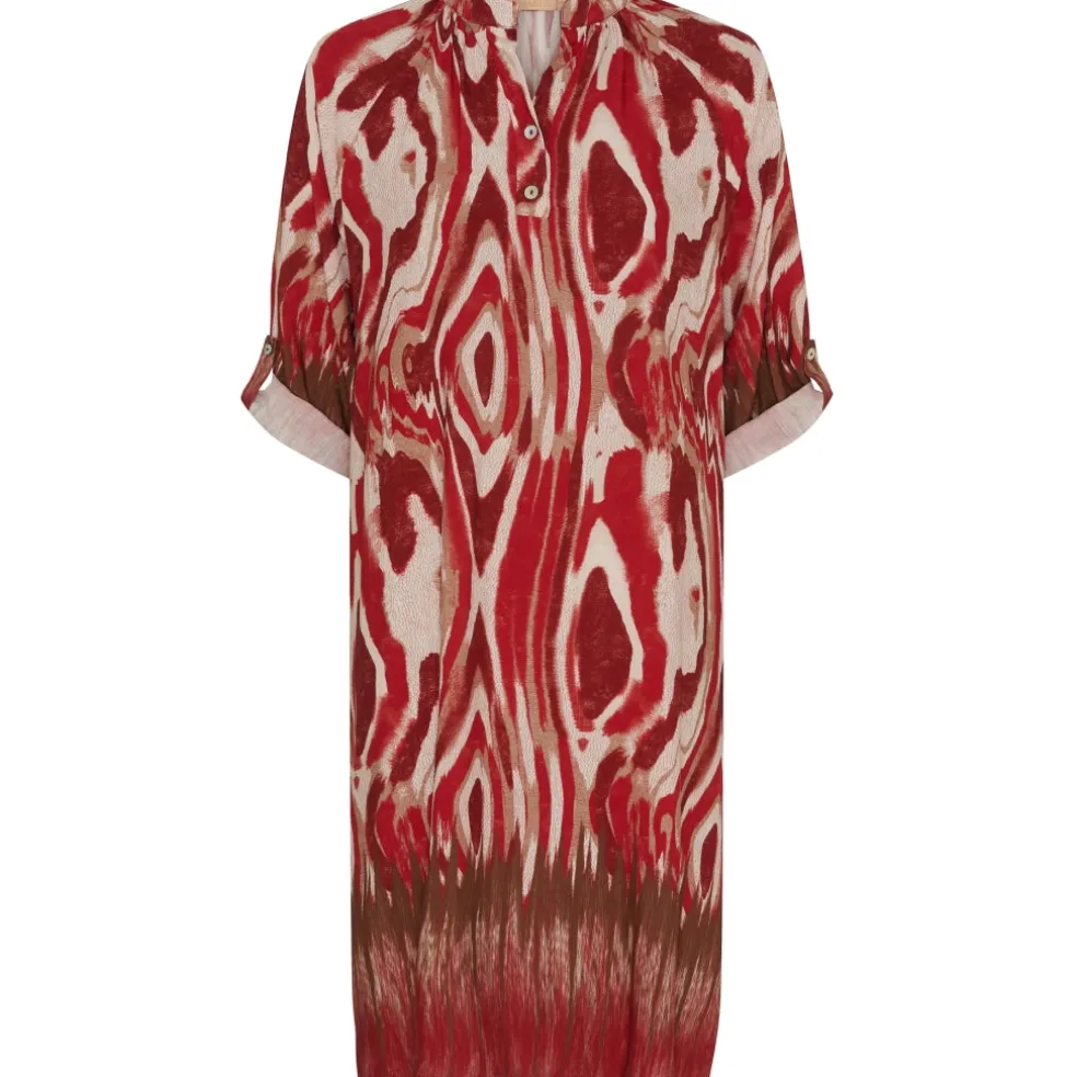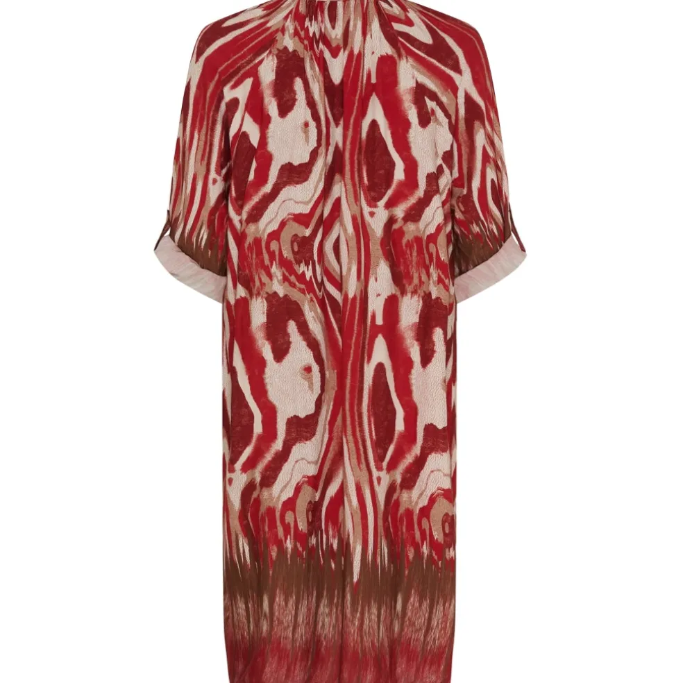 Smart og feminin kjole med ærmer, der kan foldes op. Kjolen har et unikt print og kan både bruges til hverdag med et par sneakers eller til en festligere anledning med et par støvler.