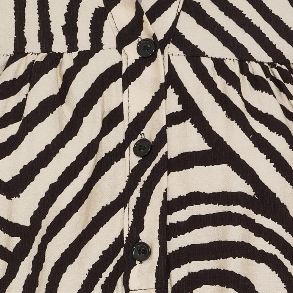 Smuk mønstret kjole med smock på ærmerne, knapper og krave. Super fin til fest med et par støvler eller stiletter, eller til hverdag med leggings og støvler – mulighederne er mange.