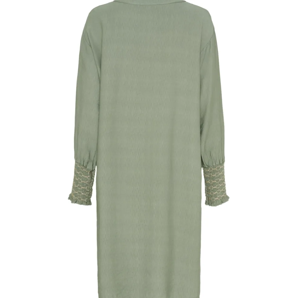 Fin og klassisk kjole med knapper langs fronten og fine detaljer ved håndleddene. Kan både bruges med tights eller leggings under. Tilføj et par sneakers for et casual hverdagslook, eller et par støvler for et mere festligt look.