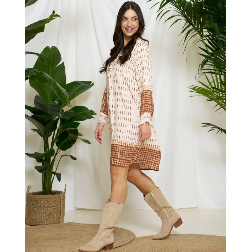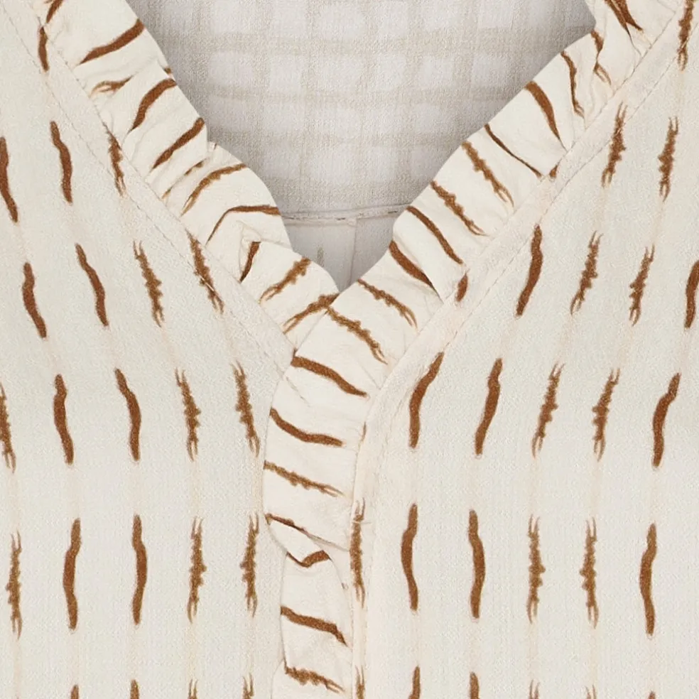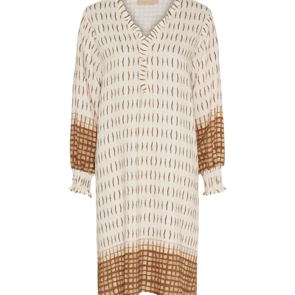 Vildt fin kjole fra Marta Du Château med v-hals og flæsedetaljer. Kjolen har smock ved håndleddene, og er super komfortabel at have på. Style den med tights og støvler for et finere look.