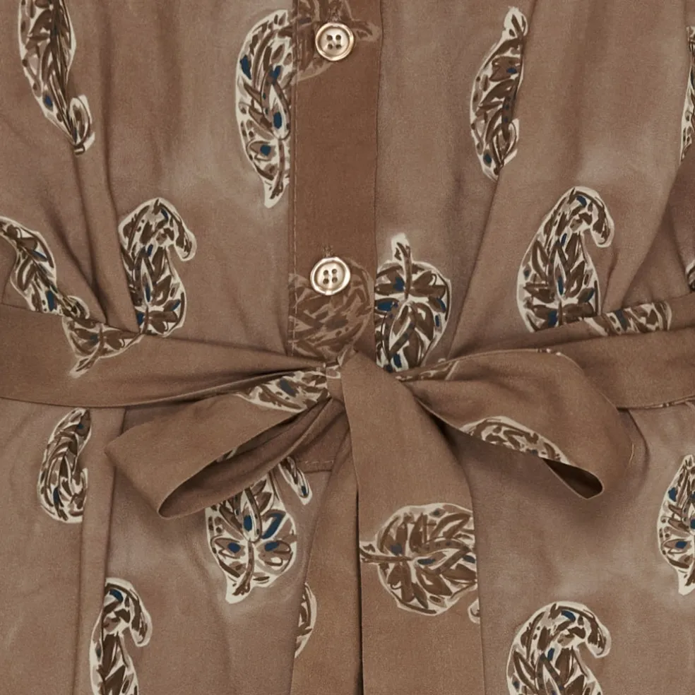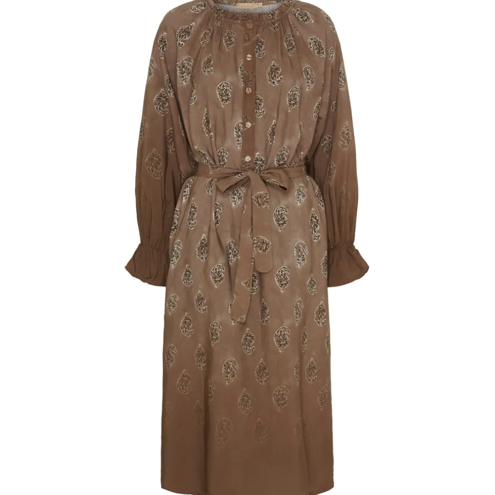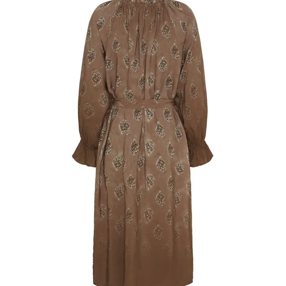 Smuk kjole med bindebånd i taljen, der giver mulighed for at fremhæve din figur. Kjolen har knapper samt en fin flæsekant ved kraven.
