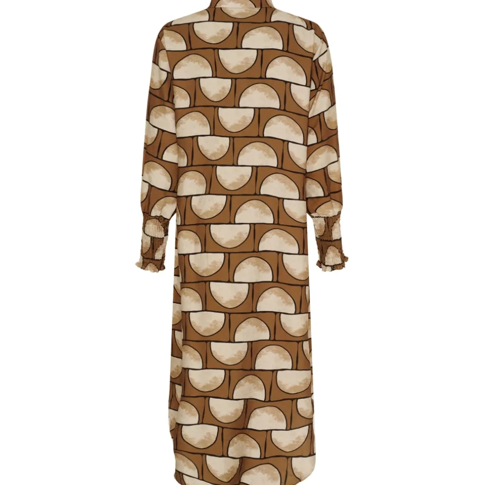 Smuk og elegant printet kjole fra Marta Du Château. Kjolen er gennemknappet, har krave og smock ved ærmer. Kan bruges til både hverdag og finere brug.