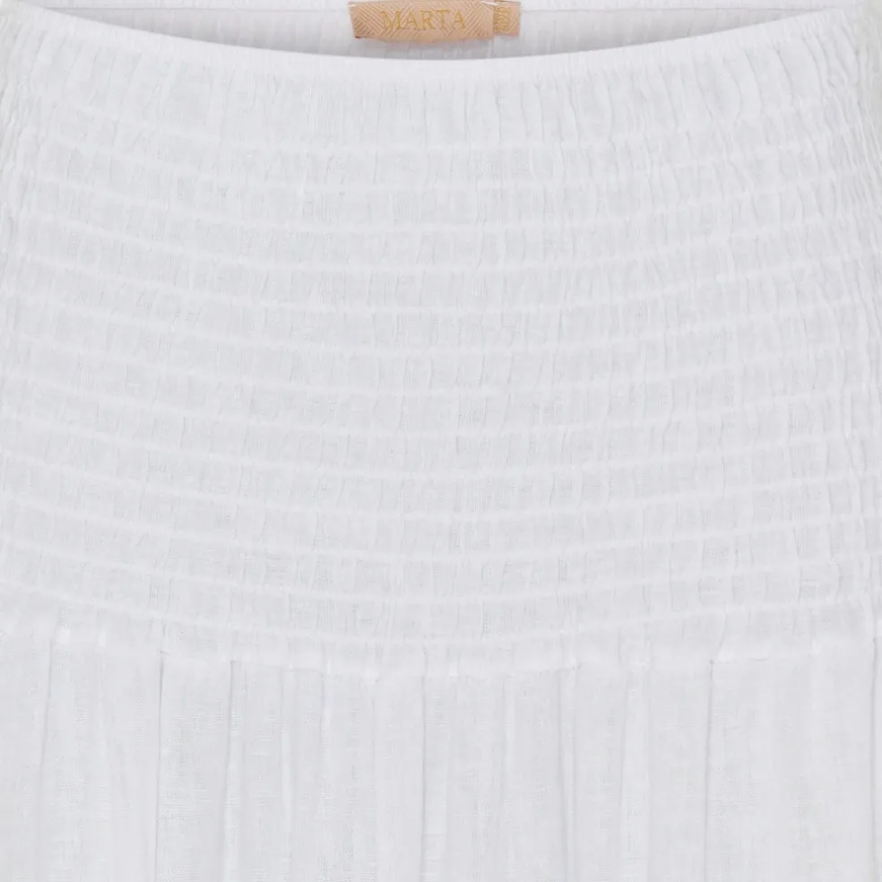 Smuk nederdel fra Marta med smock kant foroven og i det fineste print. Findes i mange forskellige farver. Kan både bruges som nederdel og som kjole.