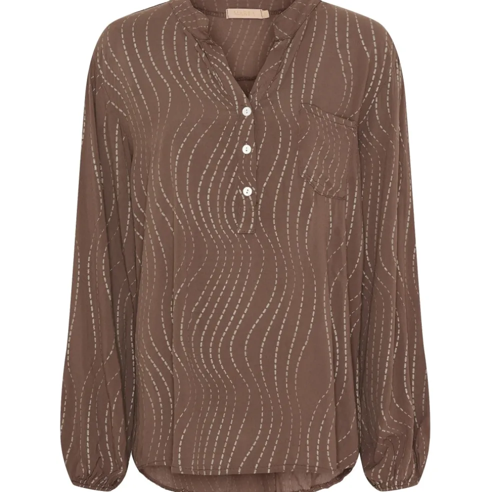 Smuk printet bluse fra Marta Du Cháteau. Med knapper og lomme foran, og med elastik ved håndledet.