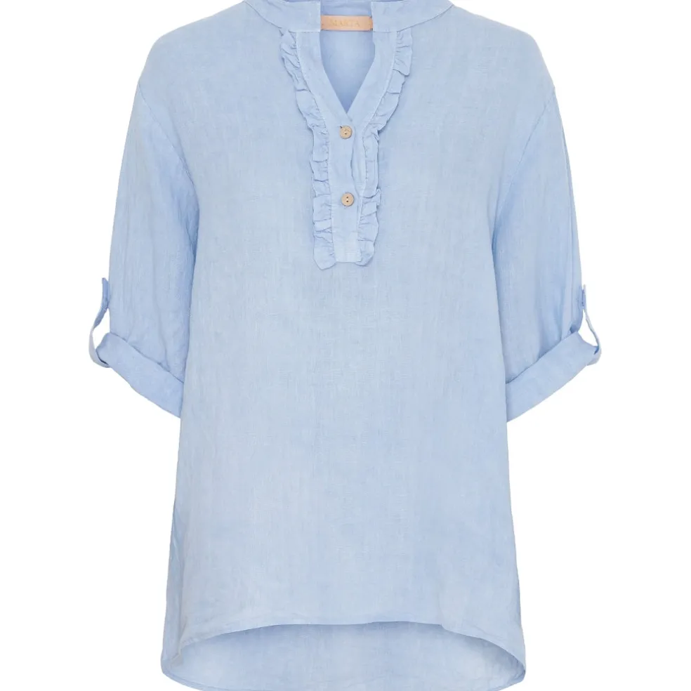 Sød hør bluse fra Marta Du Cháteau med knapper foran samt flæse detalje.
