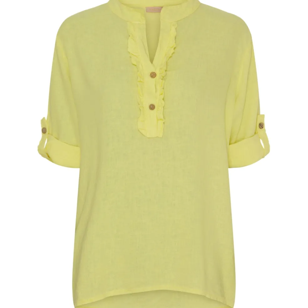 Sød hør bluse fra Marta Du Cháteau med knapper foran samt flæse detalje.