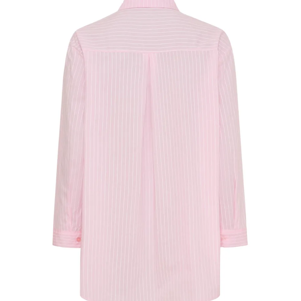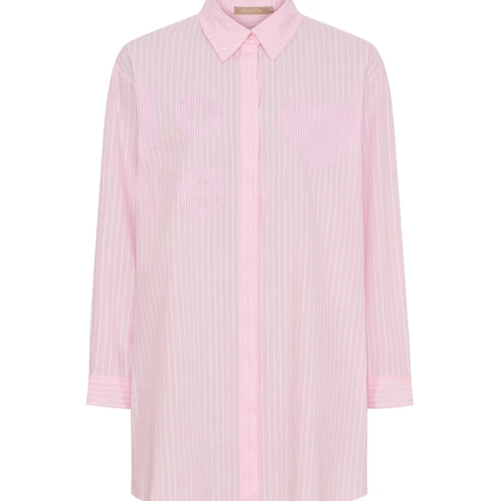 Fin og elegant stribet skjorte fra Marta Du Château med seje detaljer. Skjorten har knapper langs fronten og en klassisk krave, og er ideel til både hverdag og finere brug. Der er mulighed for både at dresse den op og ned alt efter anledningen. Super komfortabel og rar at have på.