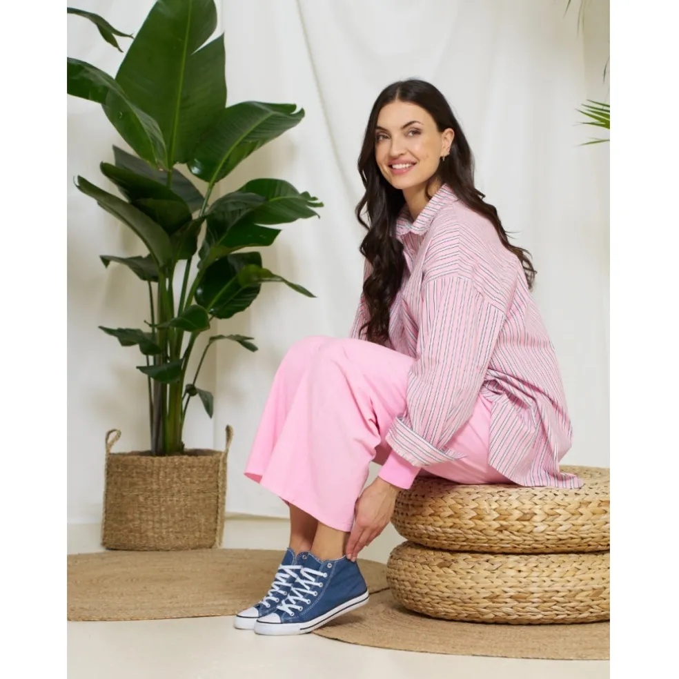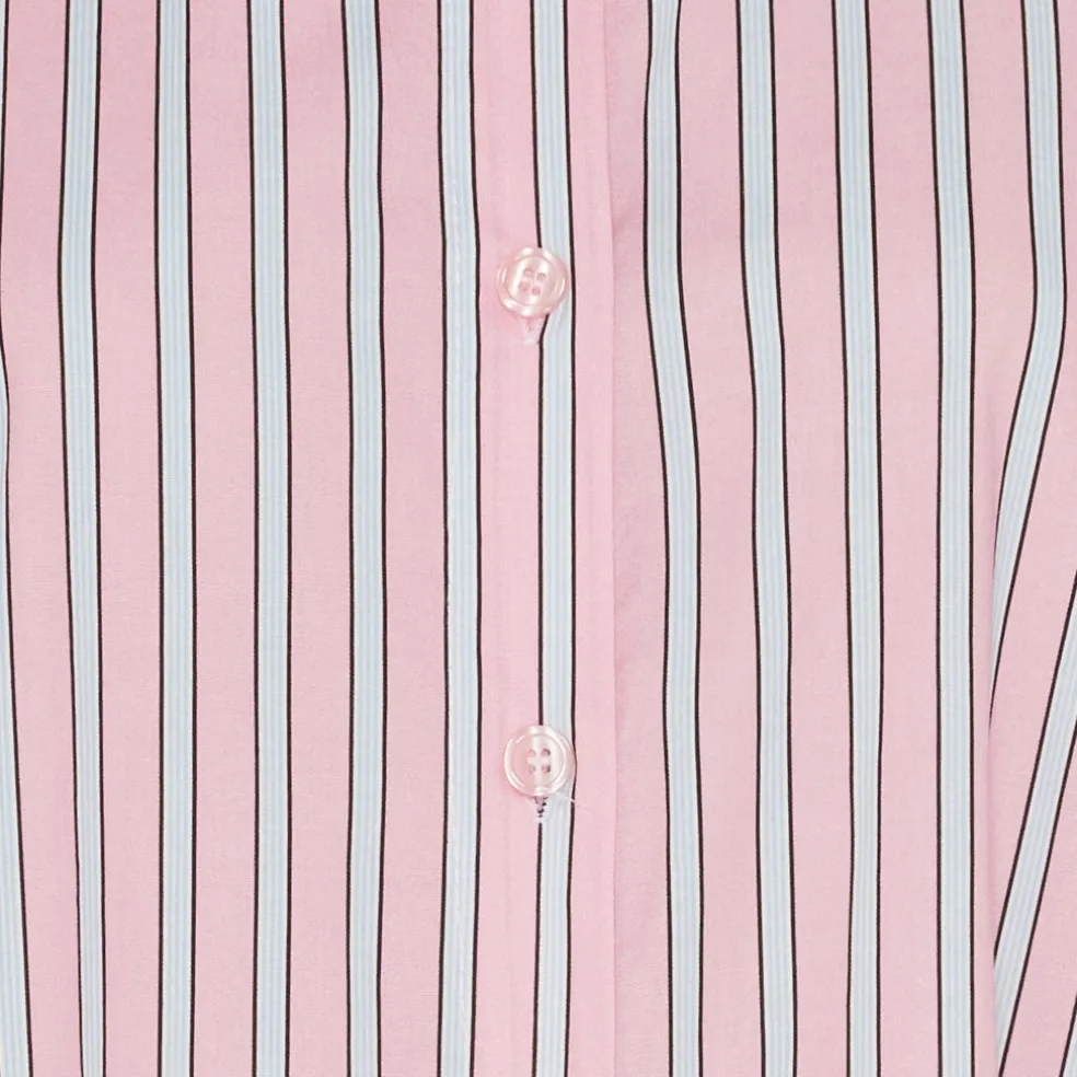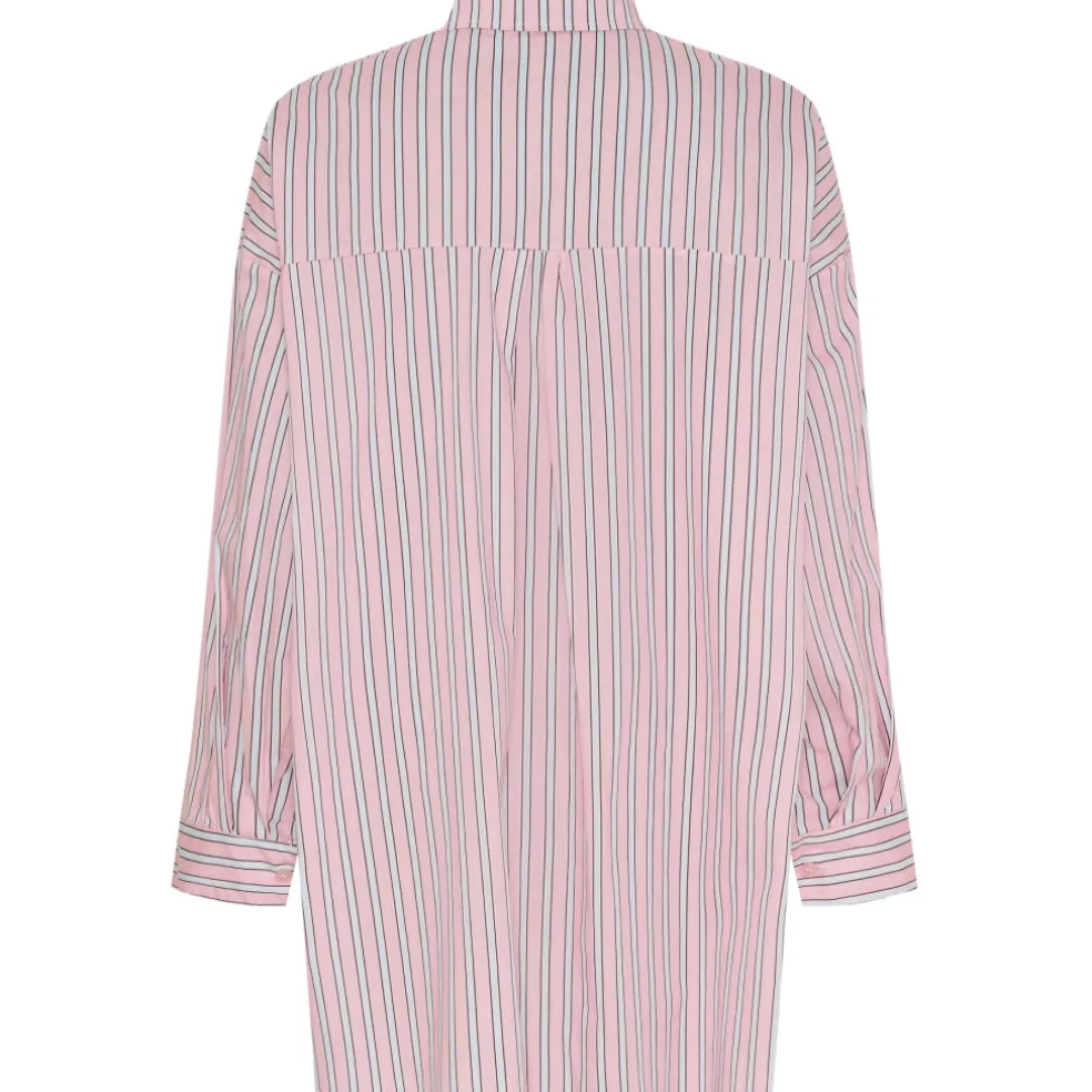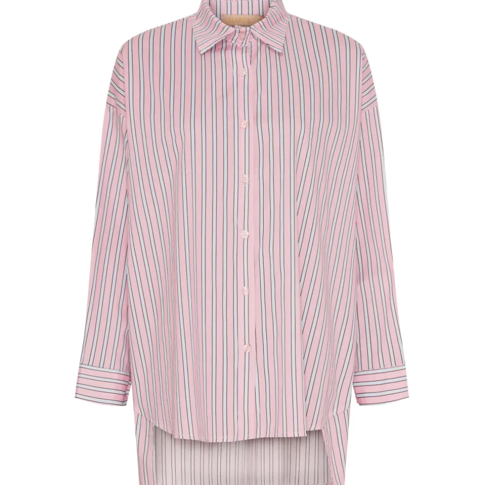Super cool stribet skjorte der er lidt længere bagtil end foran. Skjorten er gennemknappet og har en klassisk krave. Super nem at style med både jeans og nederdele alt efter looket du går efter.
