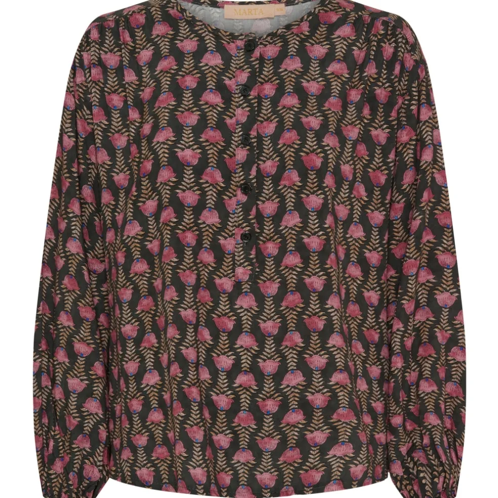 Printet bluse fra Marta Du Cháteau med rund hals, knapper foran samt elastik ved ærmerne.