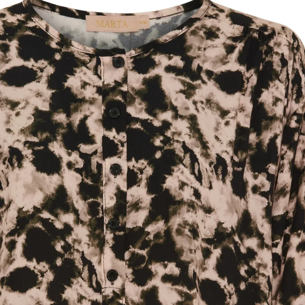Printet bluse fra Marta Du Cháteau med rund hals, knapper foran samt elastik ved ærmerne.