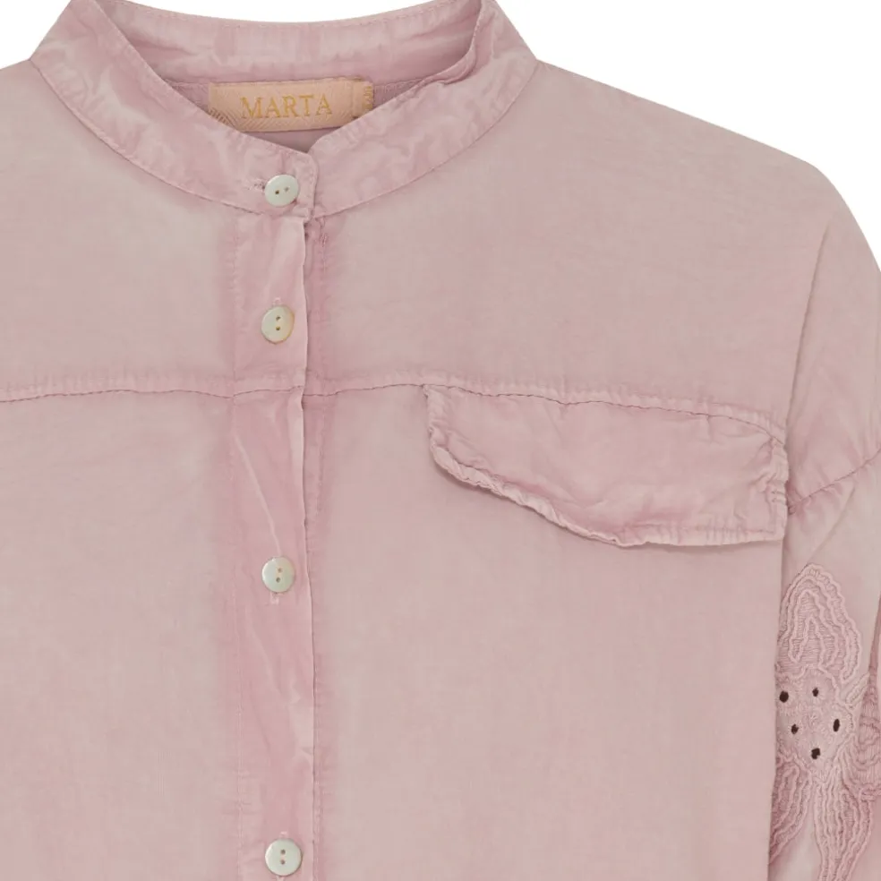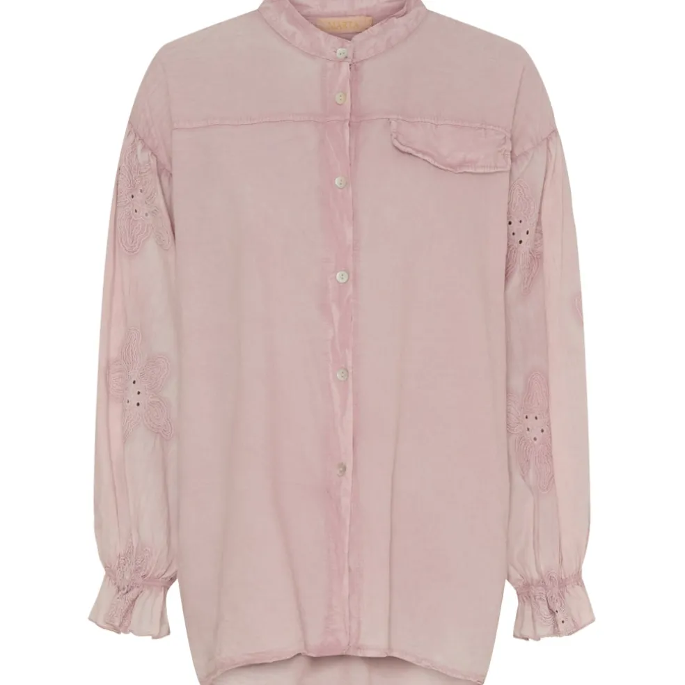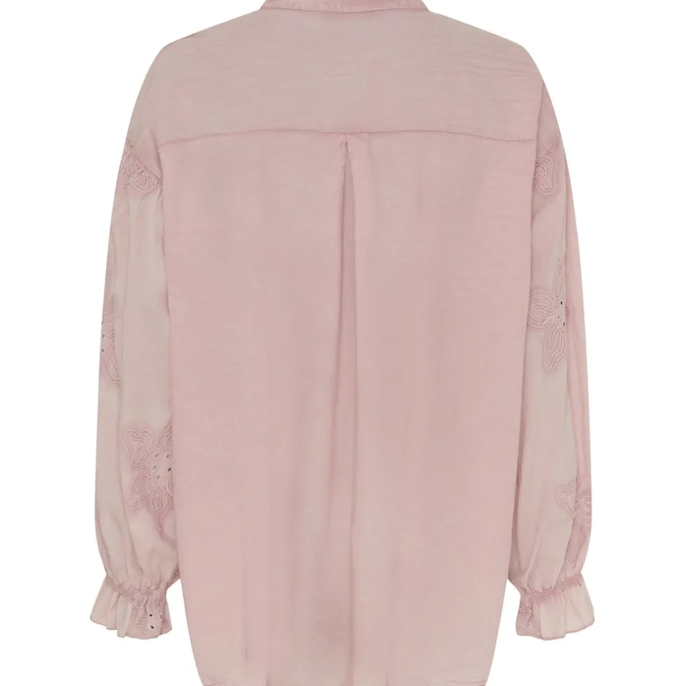 Sød skjorte med blomsterdetaljet på ærmerne.