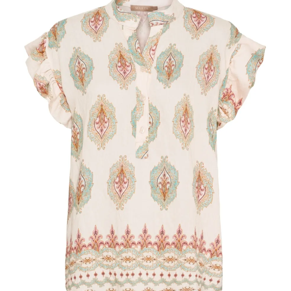 Sød sommertop fra Marta med flæsekant ved ærmerne.