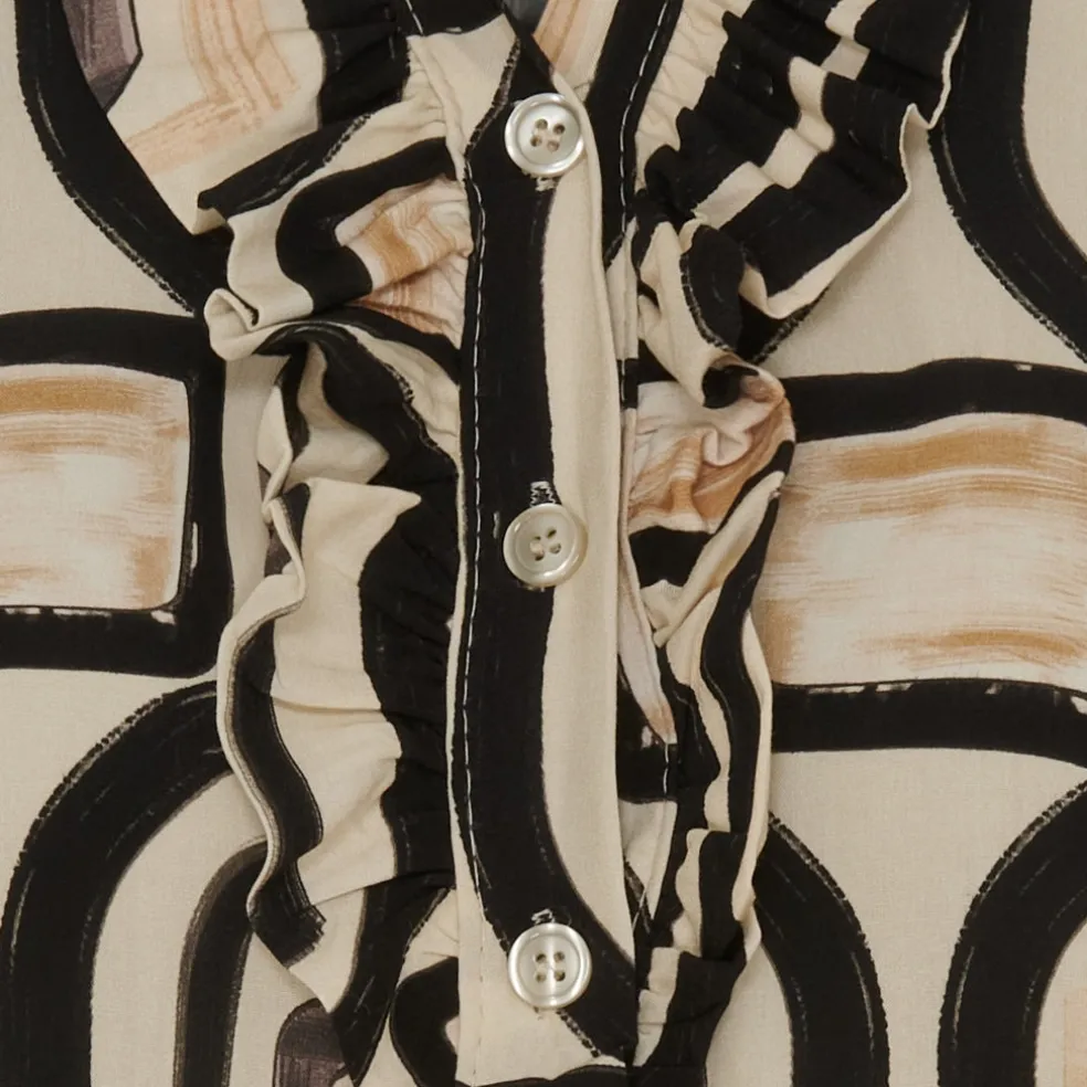 Fin bluse med flæser og smock ved ærmerne. Ideel til hverdag med et par jeans og sneakers til.