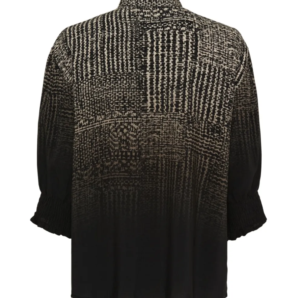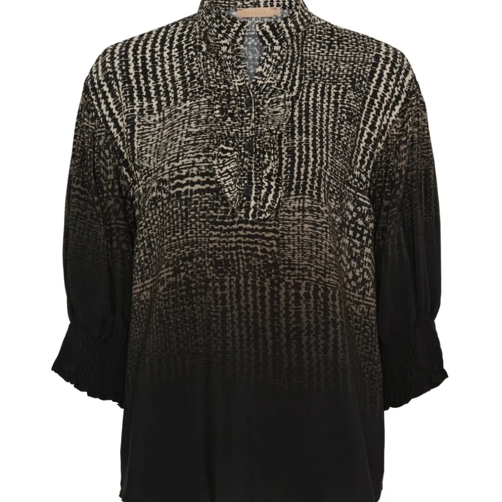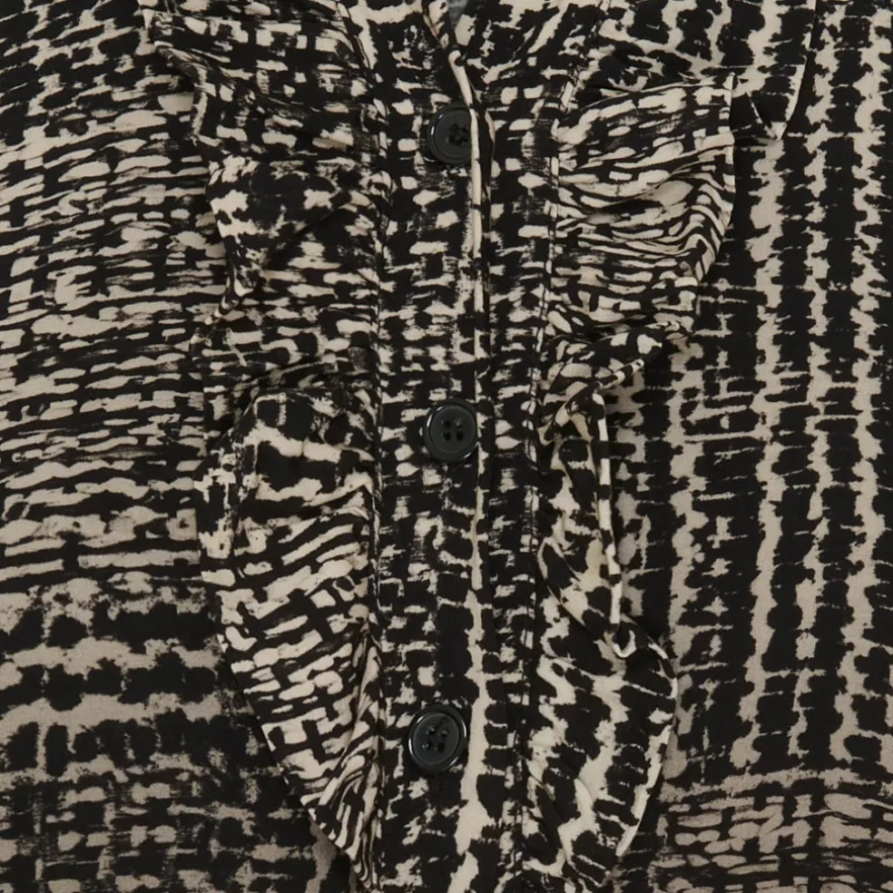 Fin bluse med flæser og smock ved ærmerne. Ideel til hverdag med et par jeans og sneakers til.