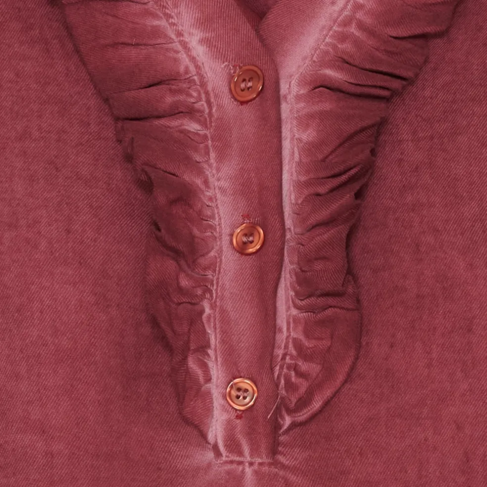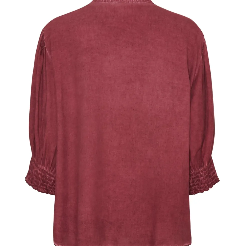 Fin bluse med flæser og smock ved ærmerne. Ideel til hverdag med et par jeans og sneakers til.