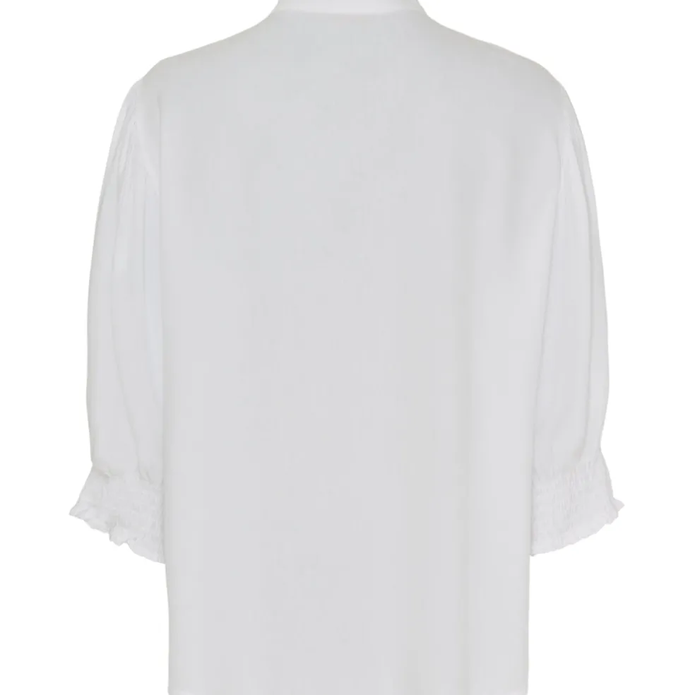 Fin bluse med flæser og smock ved ærmerne. Ideel til hverdag med et par jeans og sneakers til.