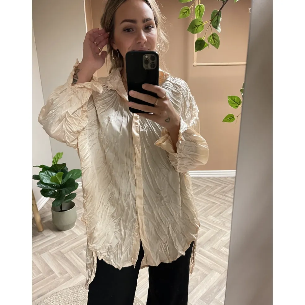 Smuk skjorte fra Marta Du Chateau i krøllet satin look. Perfekt at bruge både til hverdag og fest.