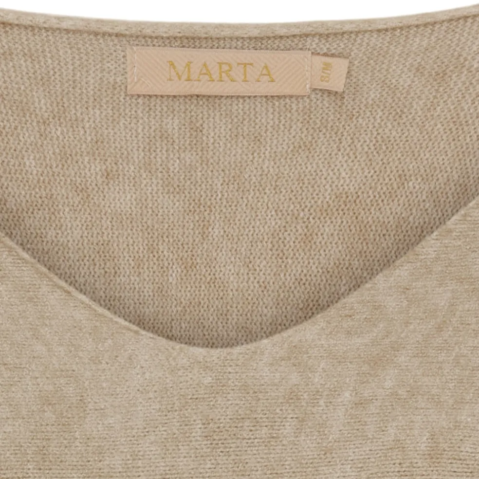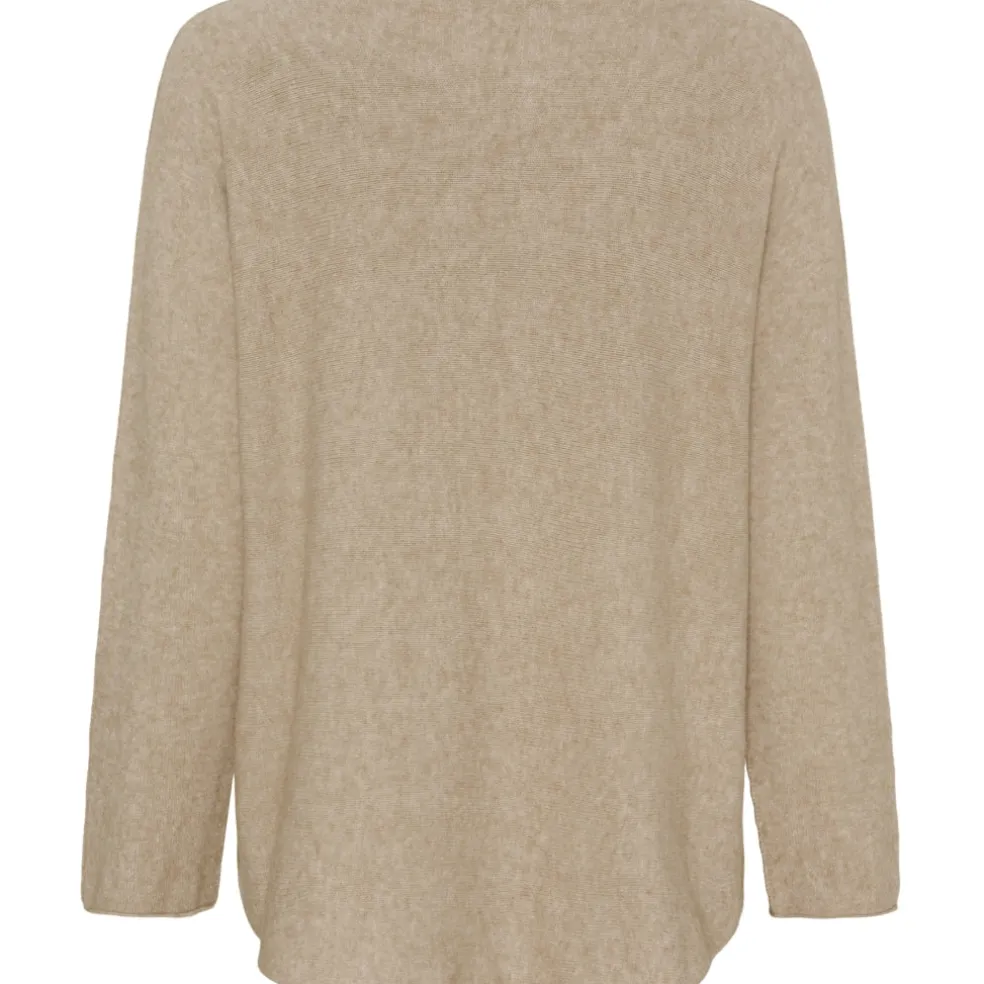 Dejlig blød striktrøje med v-hals. Strikken er super komfortabel og kan både bruges for sig selv eller med en blondetop under for en fin detalje ved halsen.