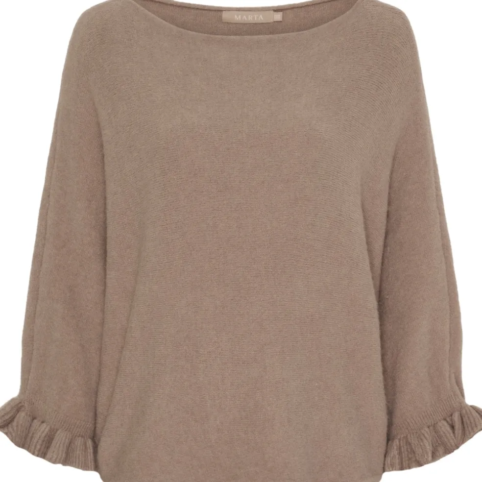 Elegant og tidløs striktrøje fra Marta du Château. Striktrøjen har lange ærmer med flæse-detalje ved ærmekant. Den kan bruges med en nederdel eller et par jeans her til de koldere dage.