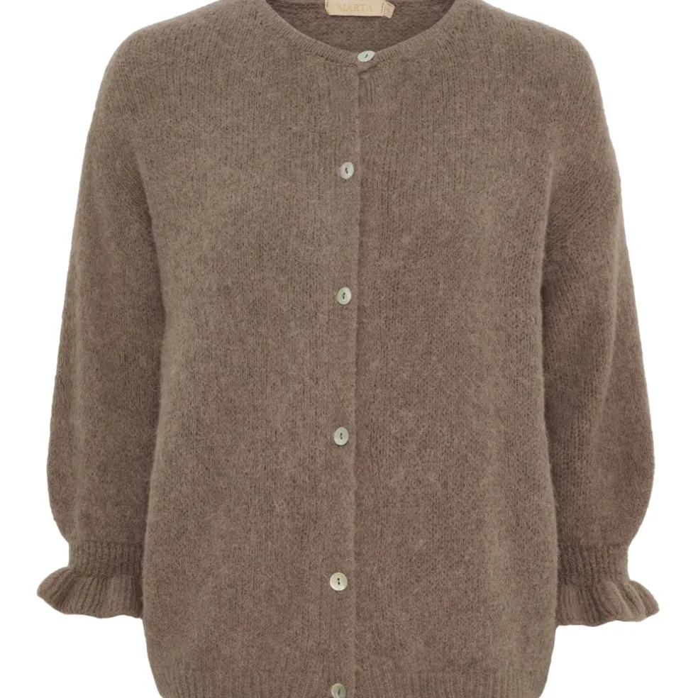 Sød strikket cardigan fra Marta med flæsedetaljer ved ærme. Cardiganen har fine knapper langs fronten og er med 3/4 ærmer. Helt perfekt til hverdagsbrug. Style den med både jeans, habitbukser og nederdele – mulighederne er mange.