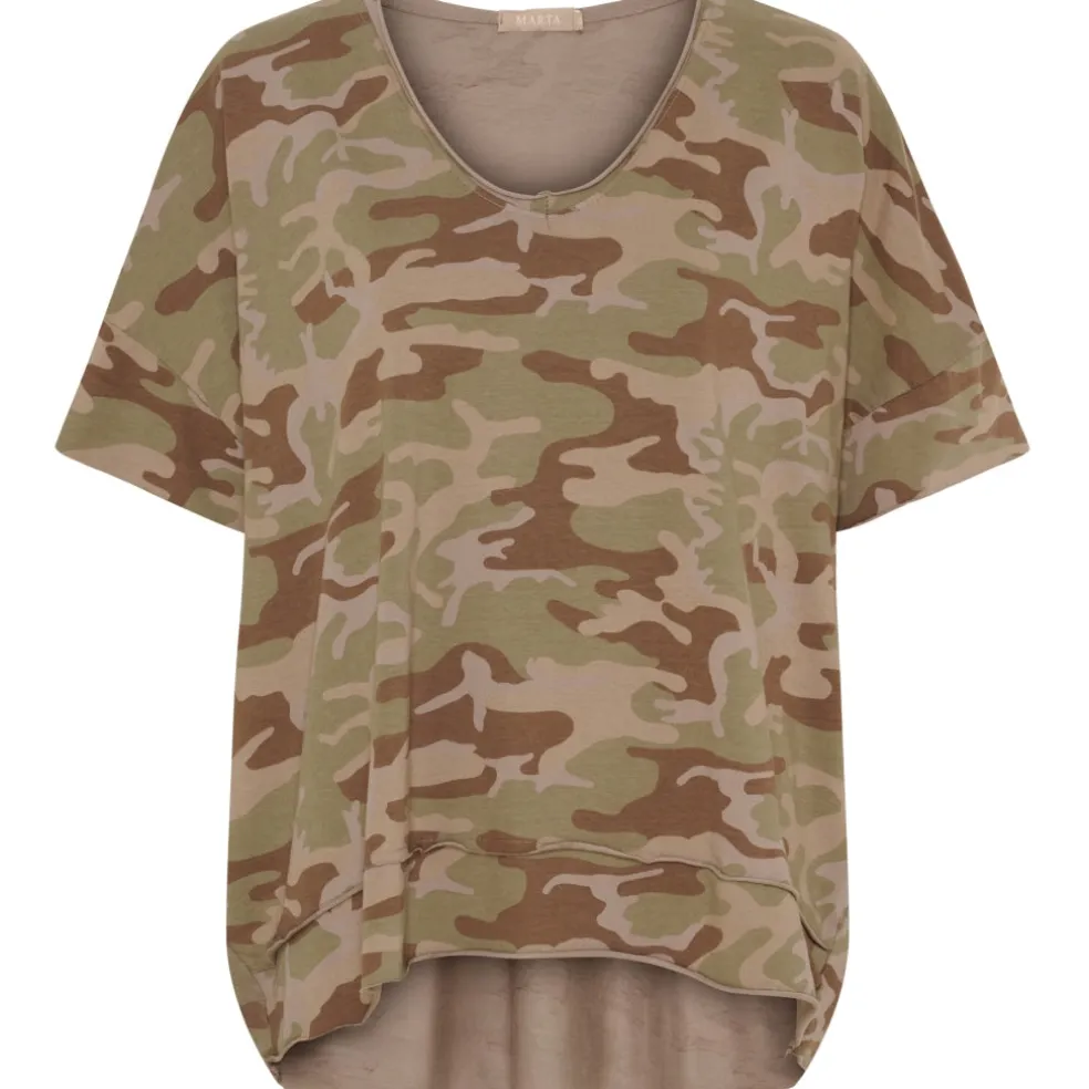 Smart t-shirt fra Marta Du Château i flot print. Den er med V-udskæring og længere bagtil. Ideel til hverdagsbrug med et par jeans, sneakers eller støvler. Brug den også med en cardigan på de kolde dage.
