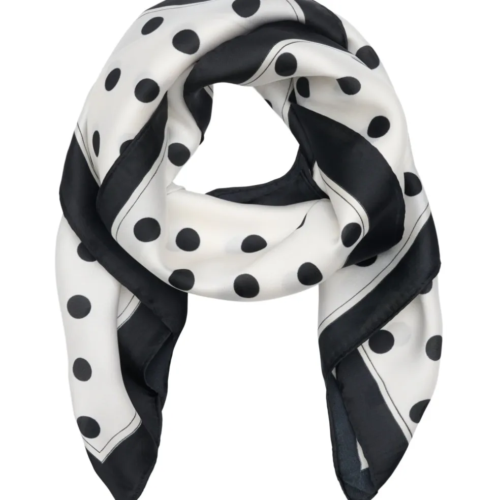 Elegant tørklæde med et moderne mønster. Ideelt til at pifte ethvert outfit op, uanset om det bruges om halsen, som hårpynt eller på tasken. En uundværlig accessory i garderoben efter vores mening.