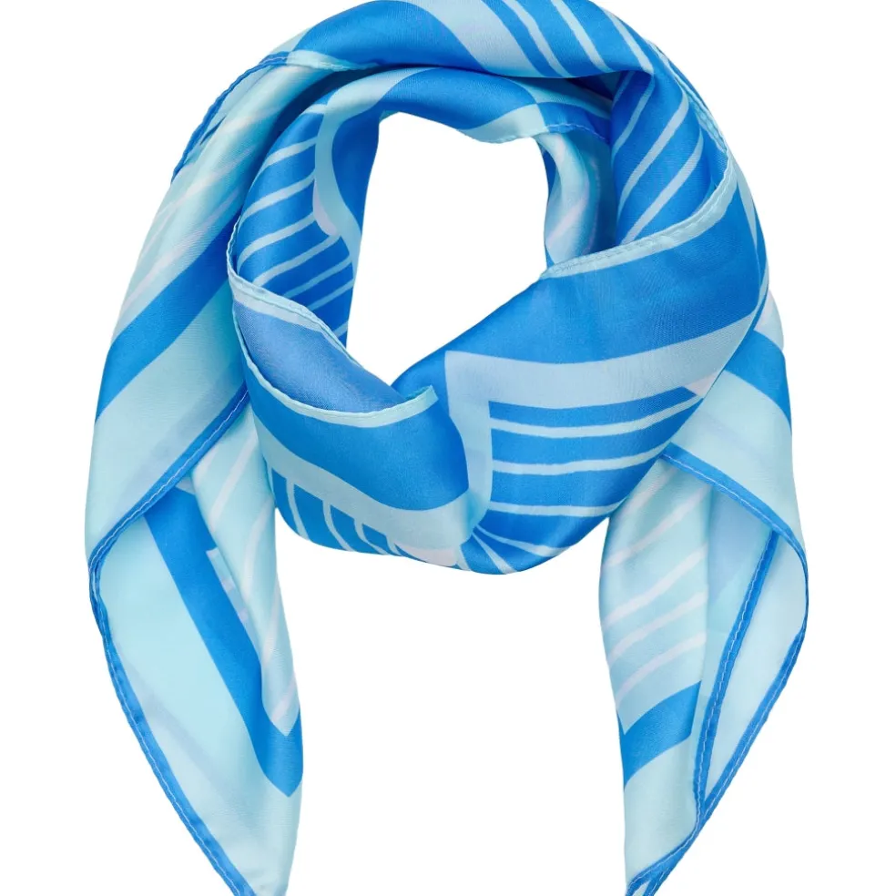 Elegant tørklæde med et moderne mønster. Ideelt til at pifte ethvert outfit op, uanset om det bruges om halsen, som hårpynt eller på tasken. En uundværlig accessory i garderoben efter vores mening.