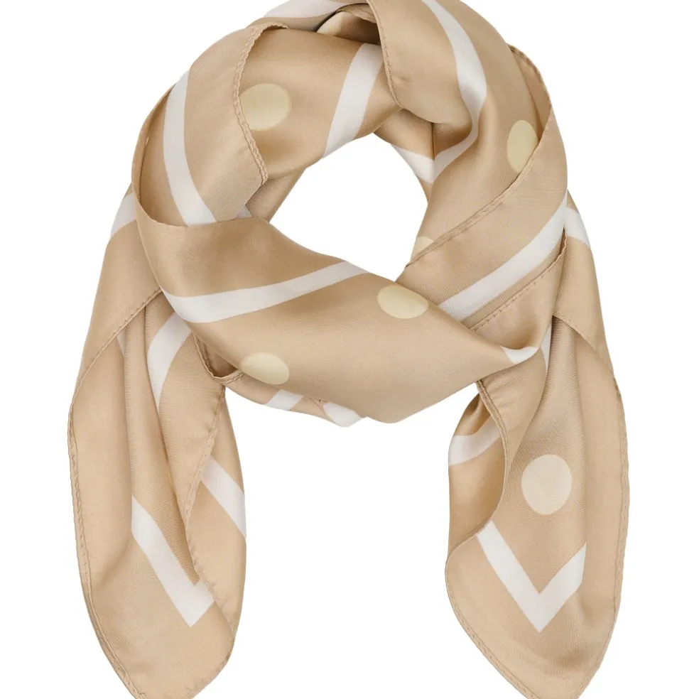 Elegant tørklæde med et moderne mønster. Ideelt til at pifte ethvert outfit op, uanset om det bruges om halsen, som hårpynt eller på tasken. En uundværlig accessory i garderoben efter vores mening.