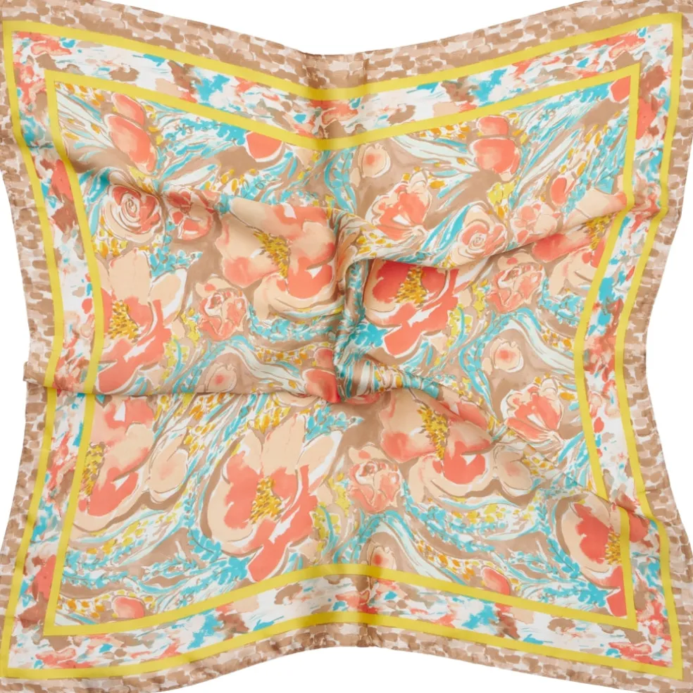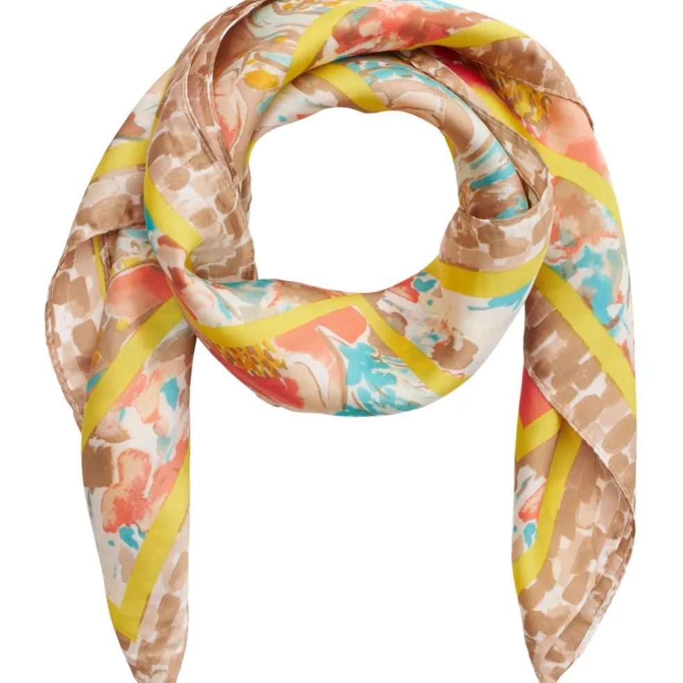 Elegant tørklæde med et moderne mønster. Ideelt til at pifte ethvert outfit op, uanset om det bruges om halsen, som hårpynt eller på tasken. En uundværlig accessory i garderoben efter vores mening.