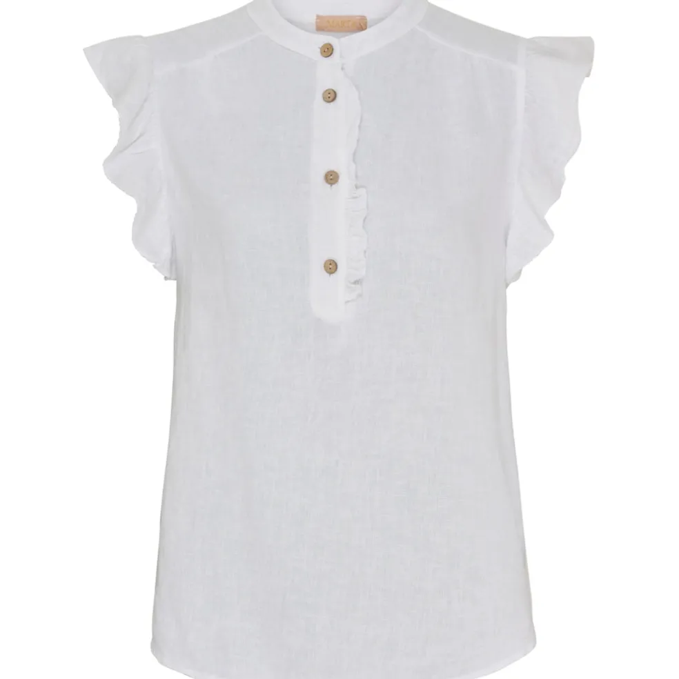 Sød top fra Marta med fin detalje med flæser ved armene. Toppen er i hør og viskose.